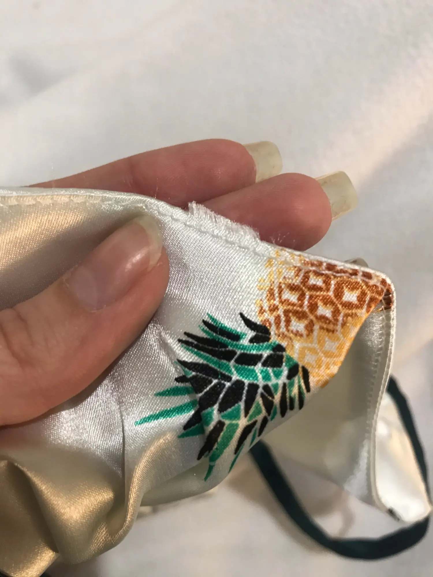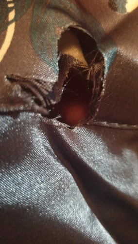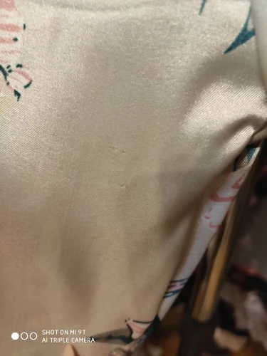 Ткань имела блестящую на ощупь, которая не та, что на фотографиях, она также розового цвета и должна быть бежевой. И некоторые предметы, которые включали в себя пакет, отсутствуют.