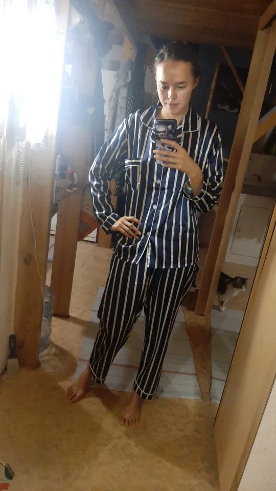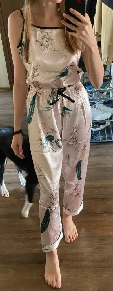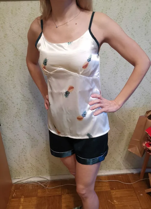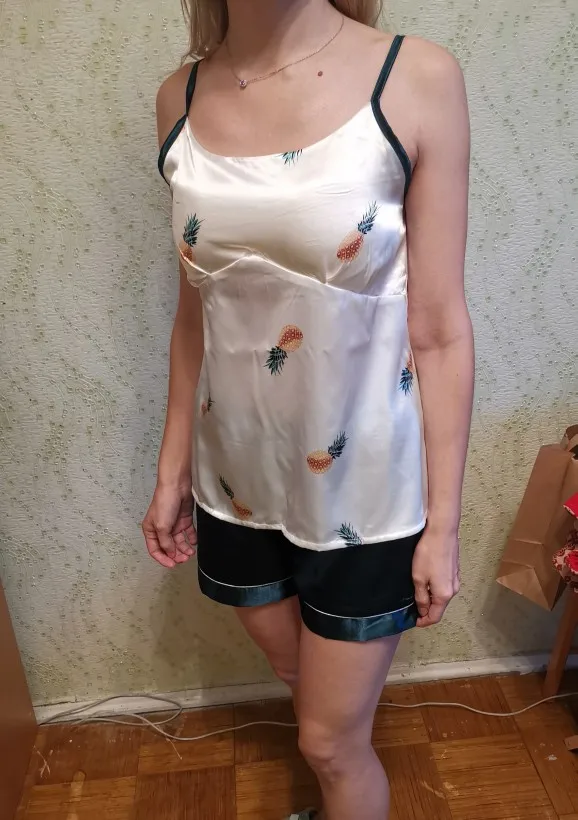 Ожидала большего. На рус 44-46 L оказался впритык. Для пижамы это конечно минус. Топик совсем маленький и короткие лямки. Но в целом неплохо. Заказ дошёл быстро. В Курскую обл за 2 недели.