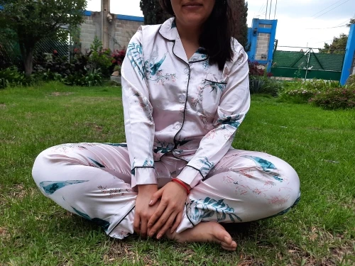 Пижама очень классная! Уже второй комплект подобный заказываю. Жена в восторге! Сидит свободно, как и хотели. Рост 164, вес 50, грудь 84, талия 64, бедра 89. Почти не мнется при носке. Очень приятная на ощупь! Рекомендую!