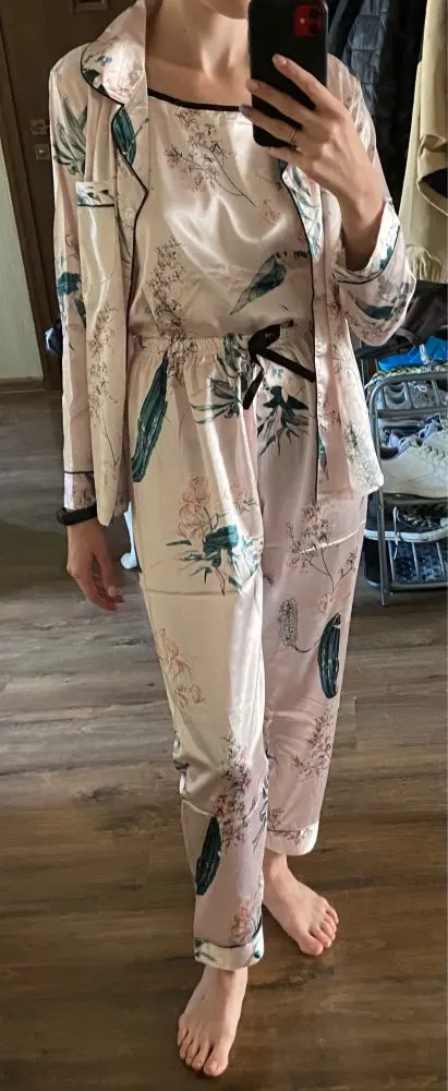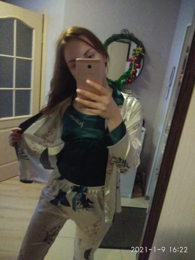 Классная Пижама! Размер подошёл Отлично) красивая, приятная. Электризуется после распаковки, но после стирки с кондиционером, думаю, эта проблема решится. На 90*70*90 размер М Отлично подошёл