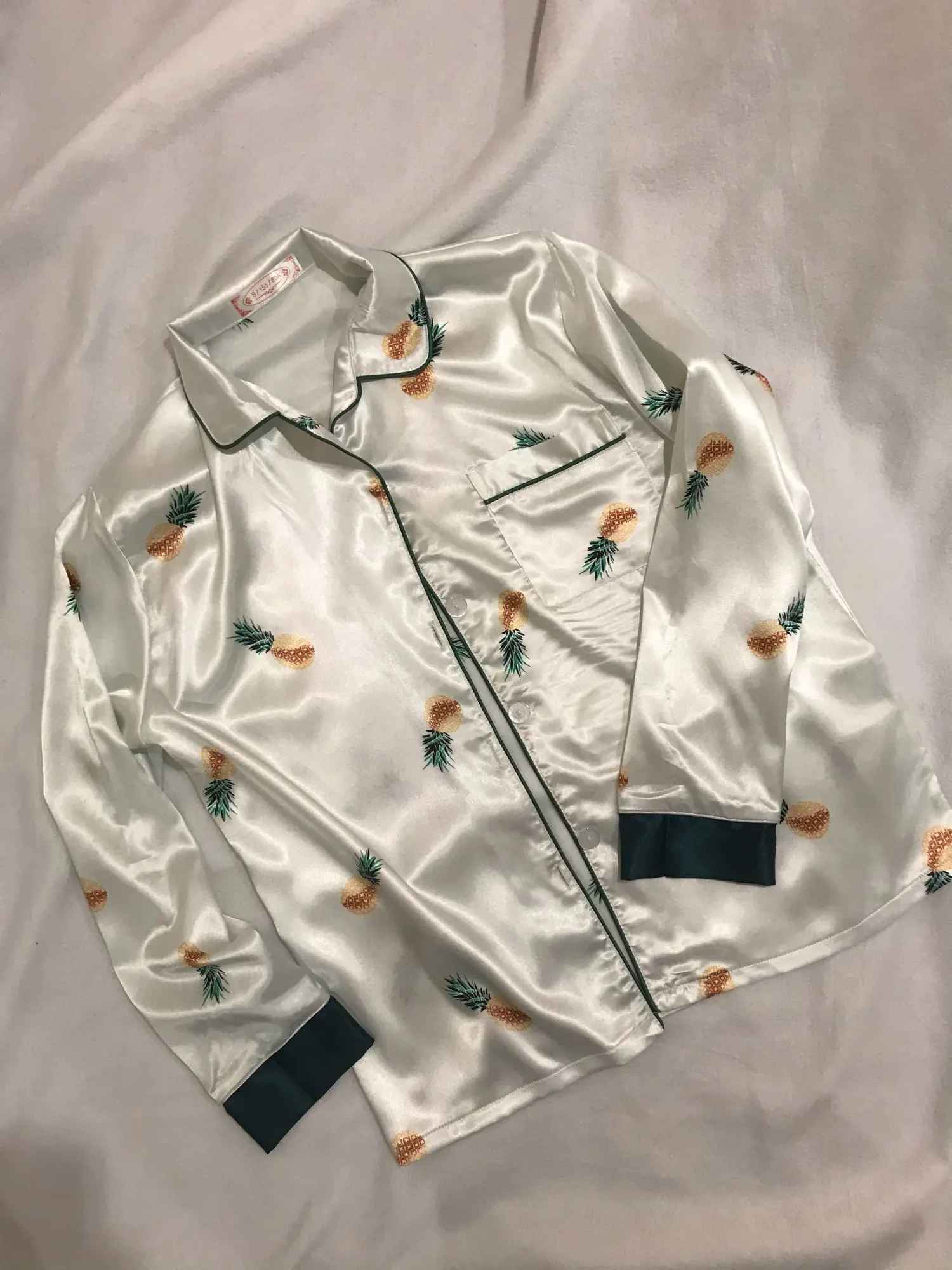 Комплект пижамный Женский, Шелковый, с длинным рукавом и эластичным поясом, 7 предметов