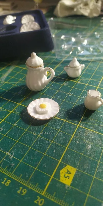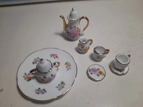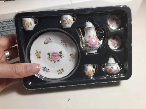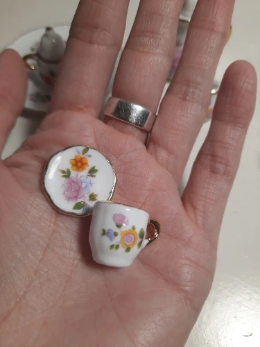 Это не идеально, блюдце стоит в центре, но все еще продукт более чем приемлем, размер идеально подходит для Барби, а также как фарфоровый и выглядит с красивыми блестящими эмалированными вставками, которые придают прекрасную отделку. Прибытие в Испанию в течение 10 дней с момента заказа