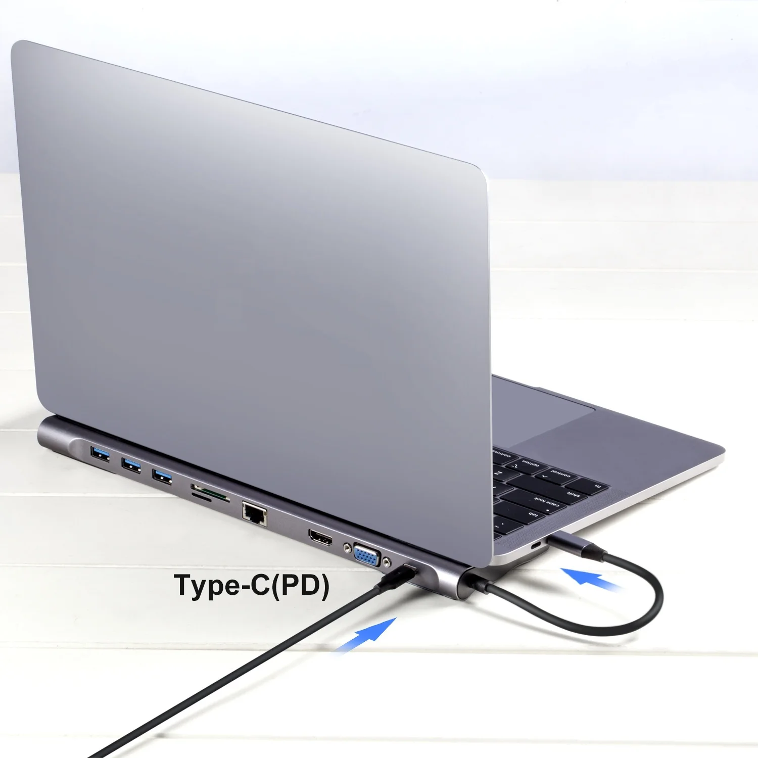 Док-станция Тип c 11 в 1, HDMI кардридер RJ45 для зарядного устройства, аудио, MacBook, поддержка расширенного режима, многофункциональный концентратор usb c 3,0