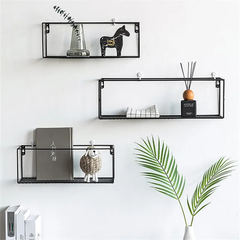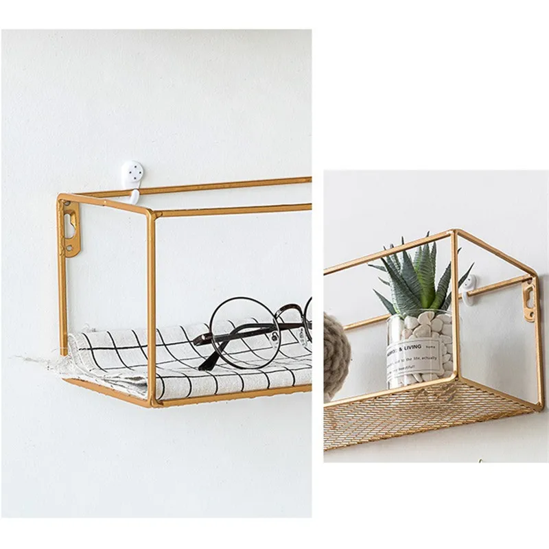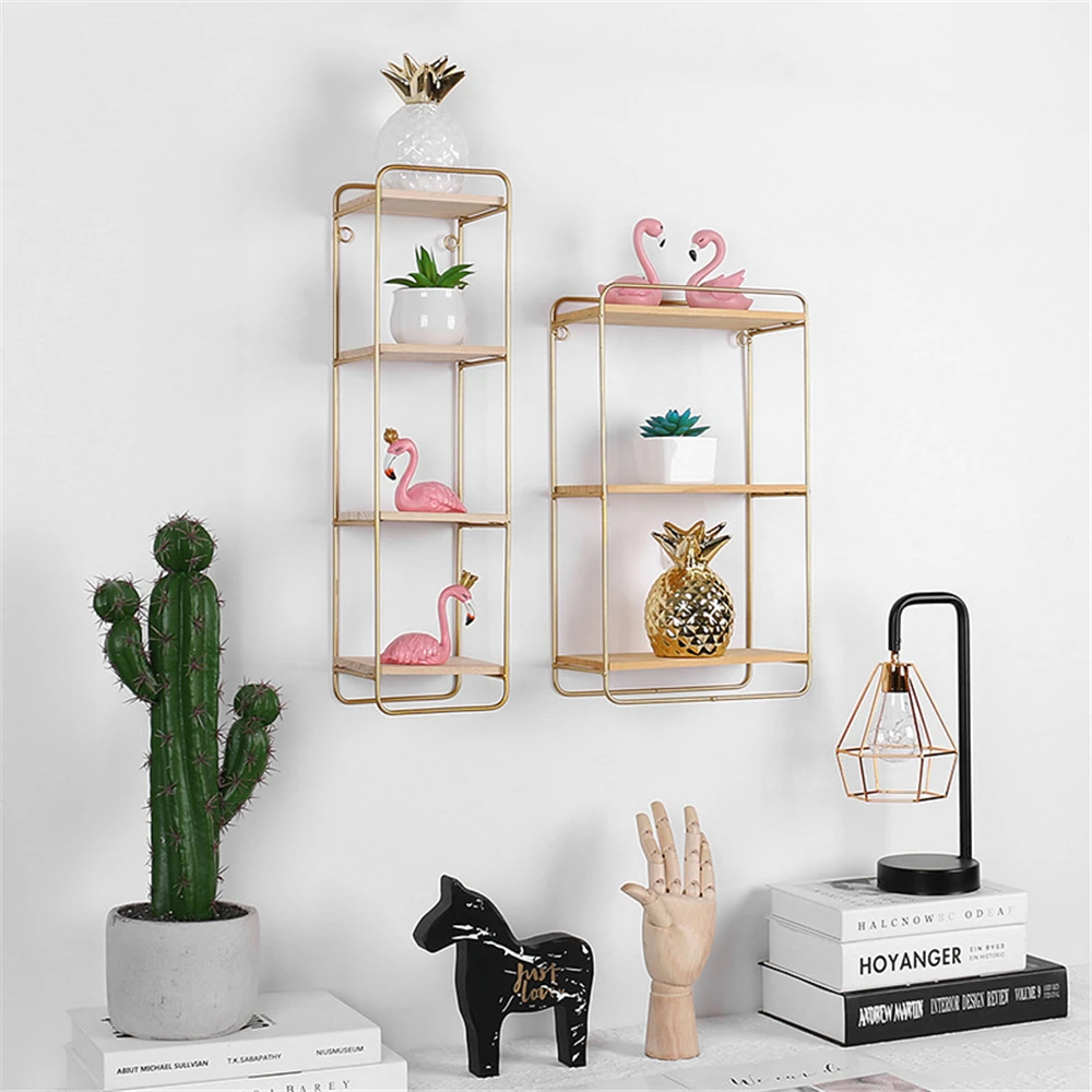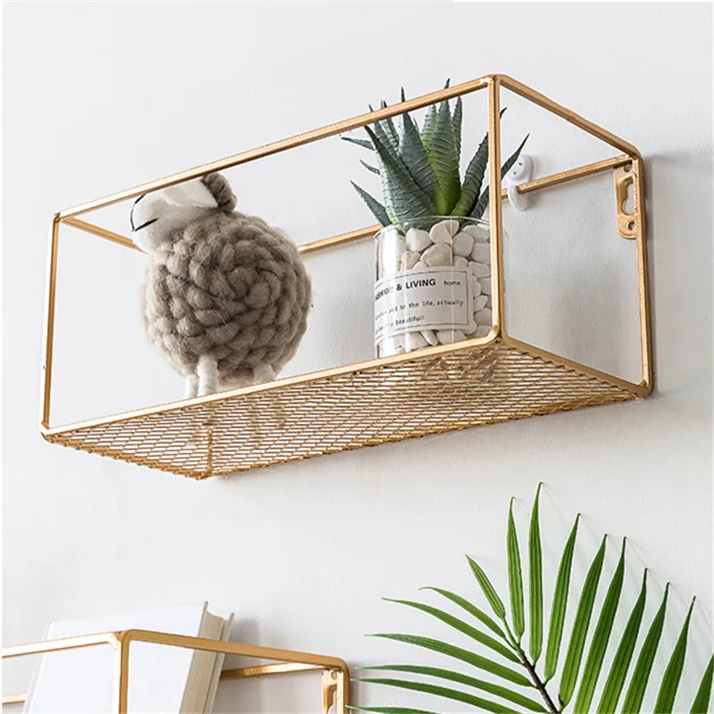 Железные настенные полки в скандинавском стиле, креативные Золотые Квадратные плавающие полки для гостиной, металлические настольные украшения, держатели для хранения
