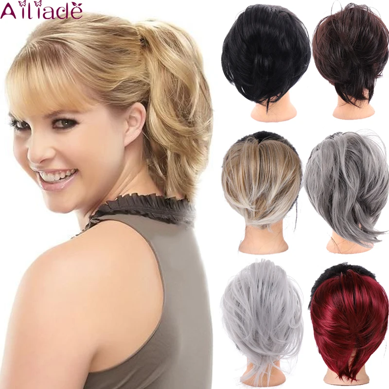 1 шт., синтетический грязный шиньон AILIADE, прямые волосы, Бублик для волос пучок, эластичные волосы для наращивания, канатная Резиновая лента для конского хвоста