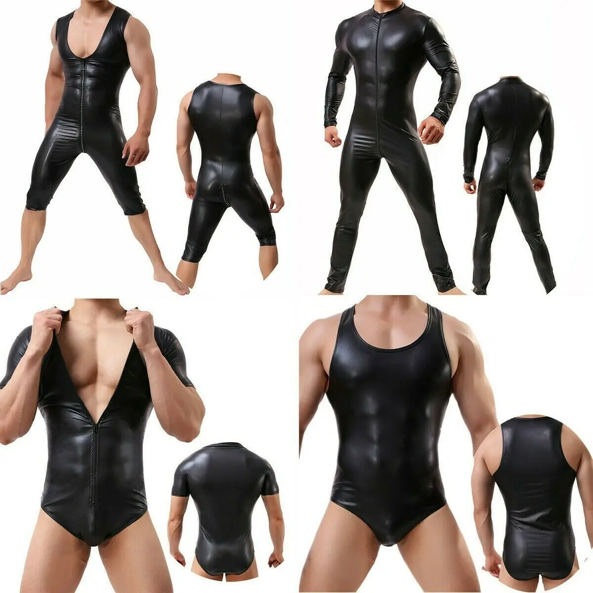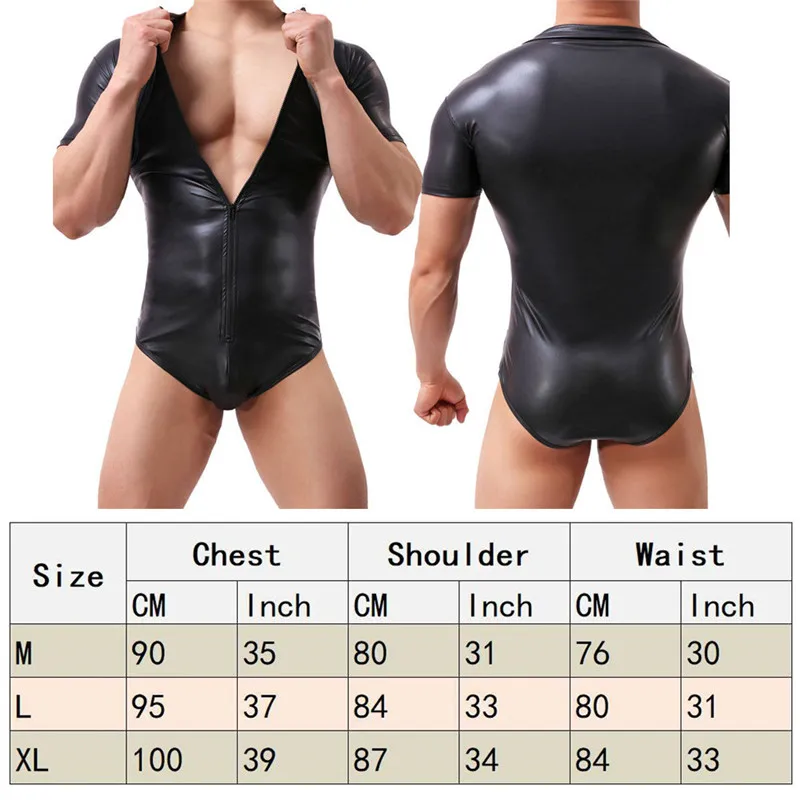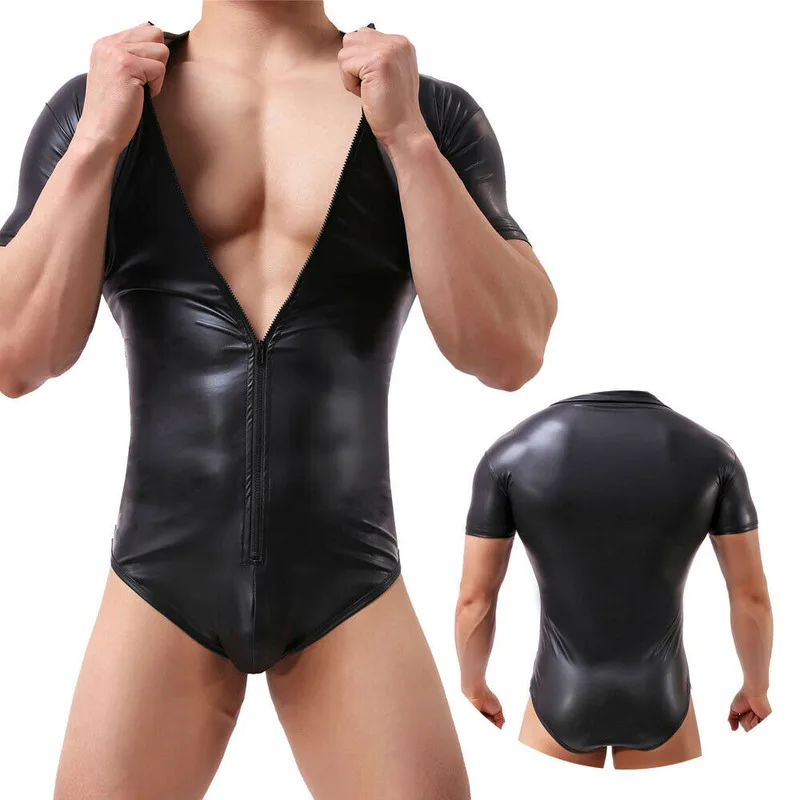 Пикантное Мужское нижнее белье, из искусственной кожи боди, Облегающий комбинезон, Цельный купальник на молнии, трико для борьбы, комбинезон, клубная одежда