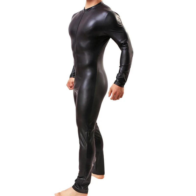Сексуальное мужское нижнее белье из искусственной кожи, боди, Облегающий комбинезон, цельный комбинезон на молнии, трико, спортивный костюм, клубная одежда
