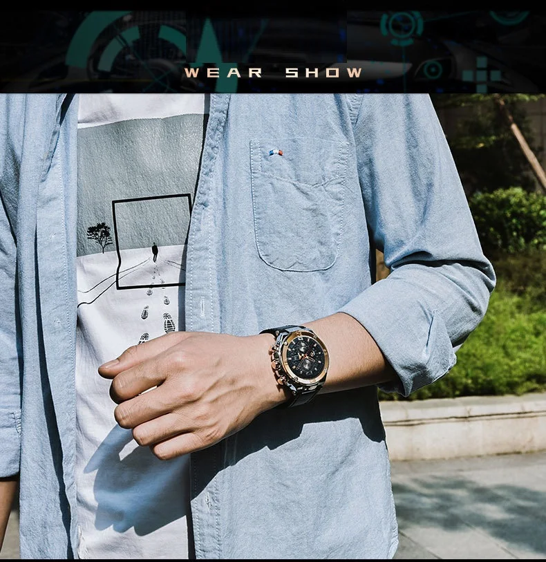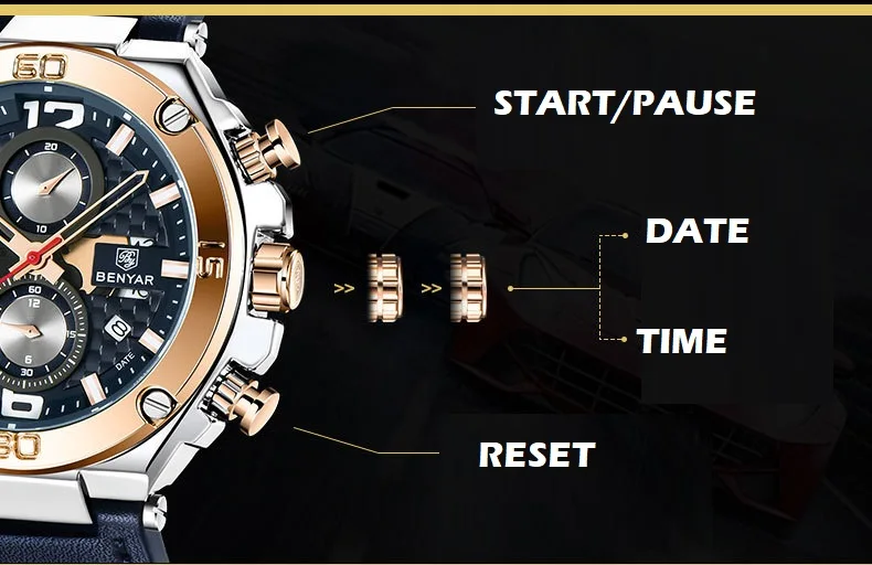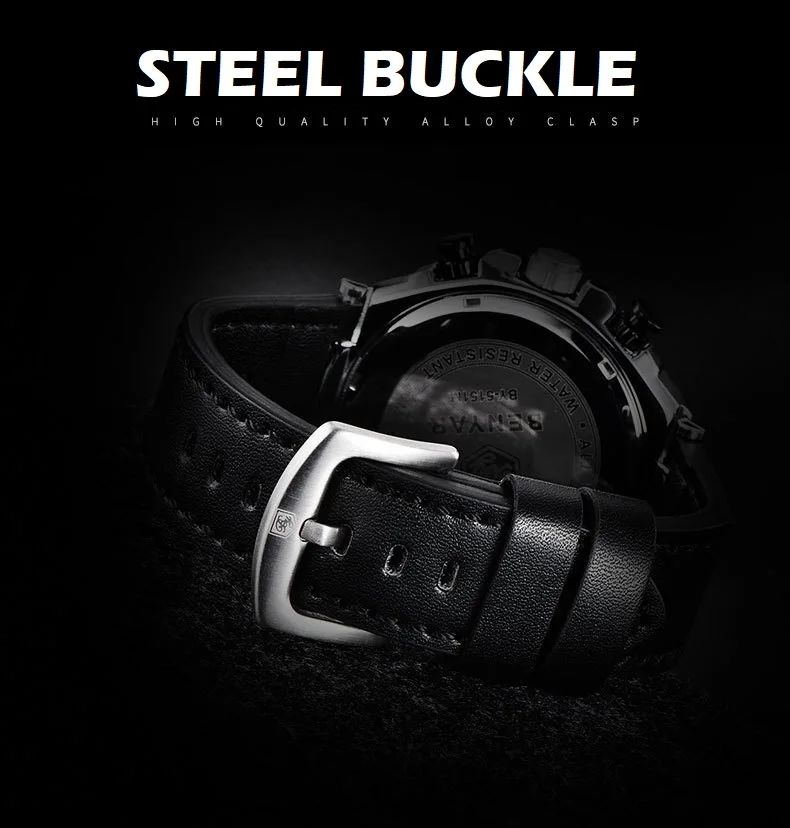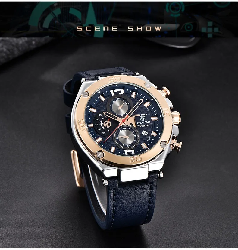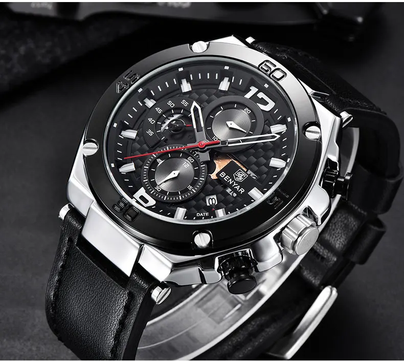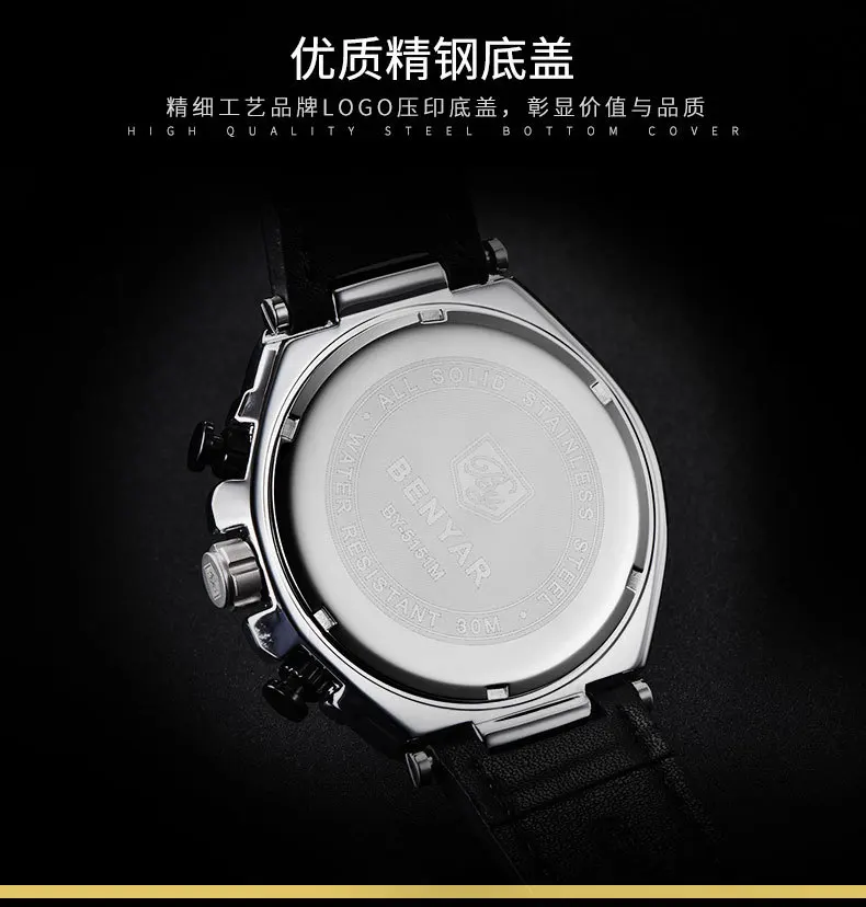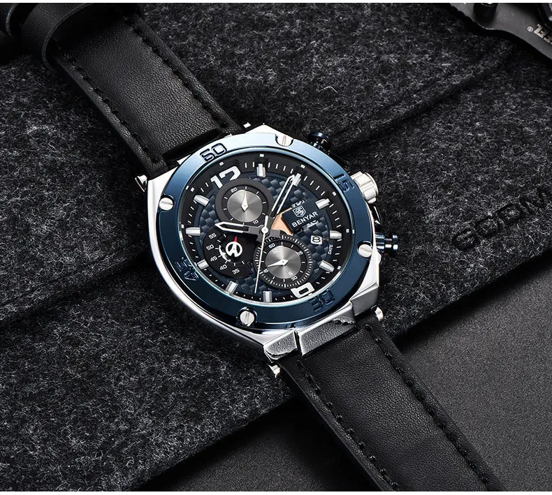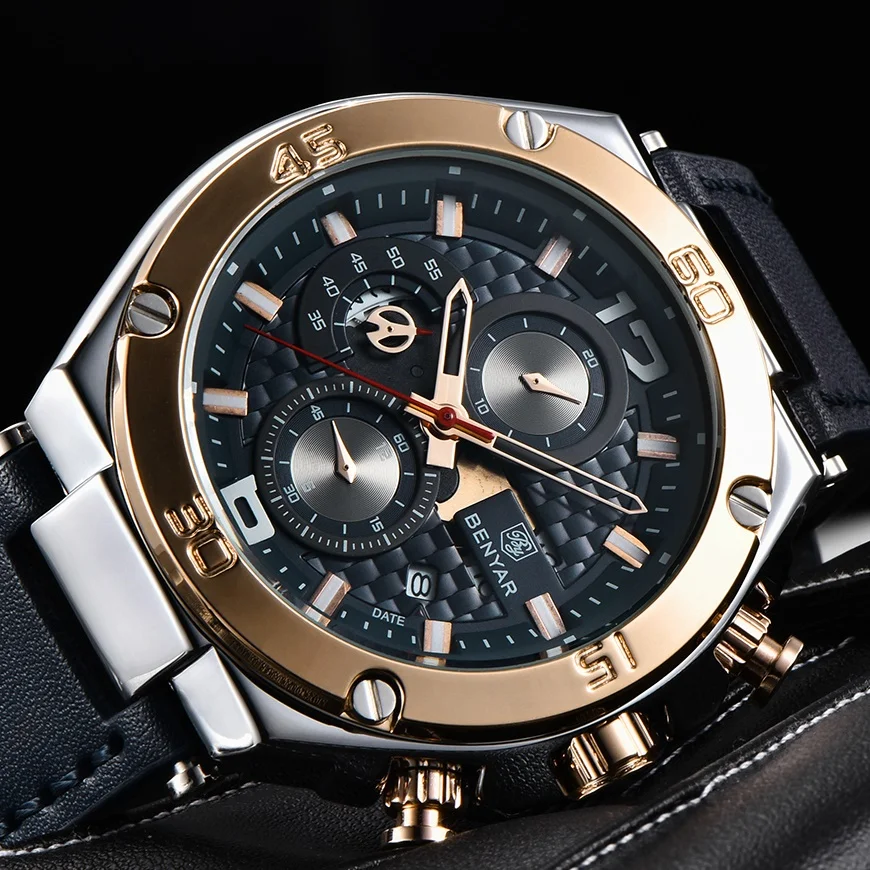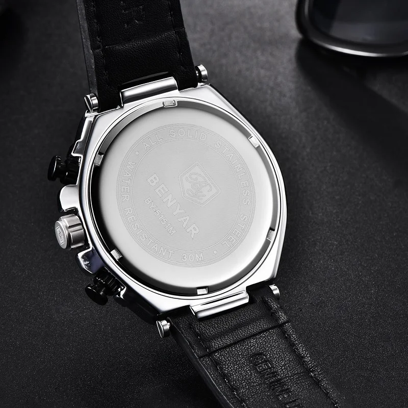 BENYAR Лидирующий бренд большой циферблат дизайн часы с хронографом...