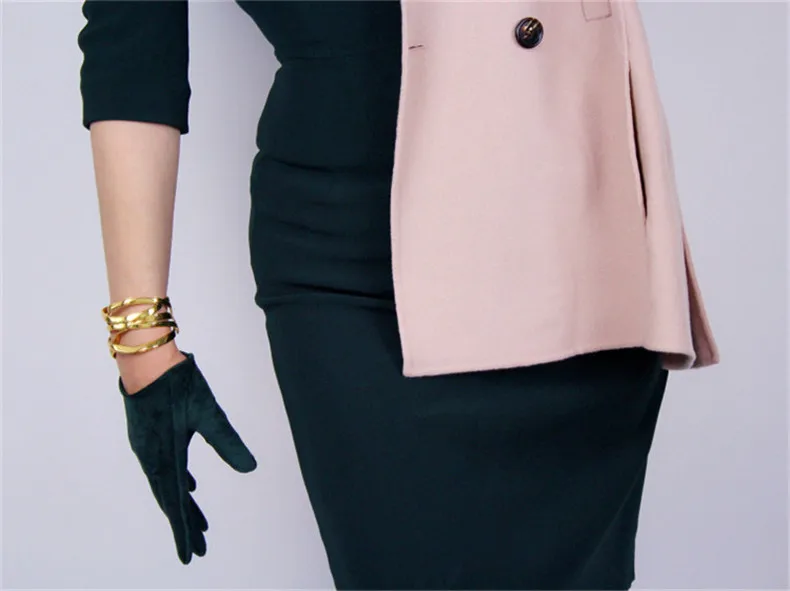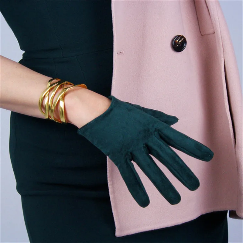 Женские замшевые перчатки, темно-зеленые перчатки из искусственной замши, 16 см