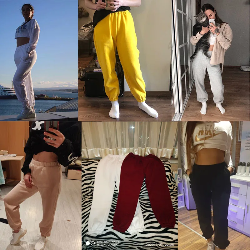 Женские спортивные штаны из хлопка, с высокой талией и эластичной резинкой, большие размеры, мешковатые джоггеры