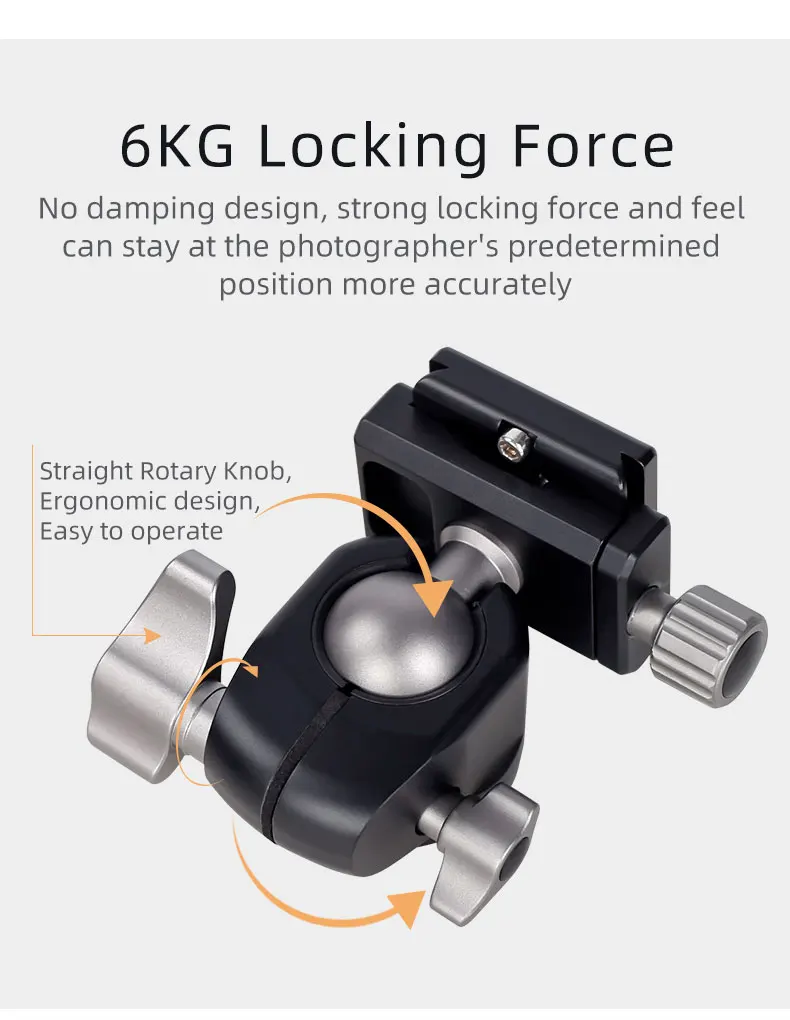 Полностью совместим с шаровой головкой, очень удобно при использовании. Система ручки обеспечивает хорошее ощущение затягивания.