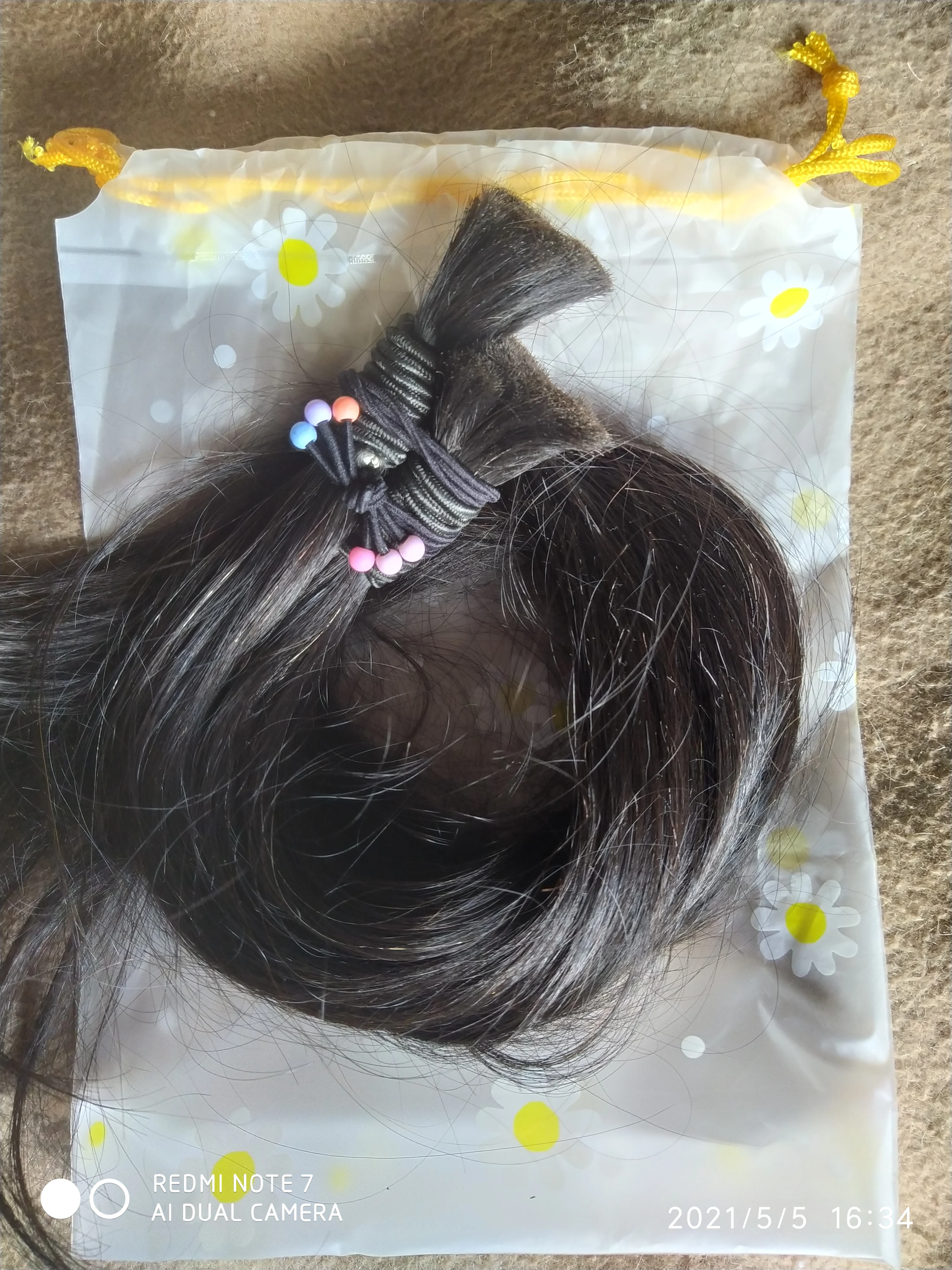 Заказала 16.04 пришло 05.05 в Латвию. Седых волос очень мало, коротких волос много но за такую цену я была уверена что их и будет много. Упаковано в красивой сумочке и в подарок резинку для волос положили, спасибо.