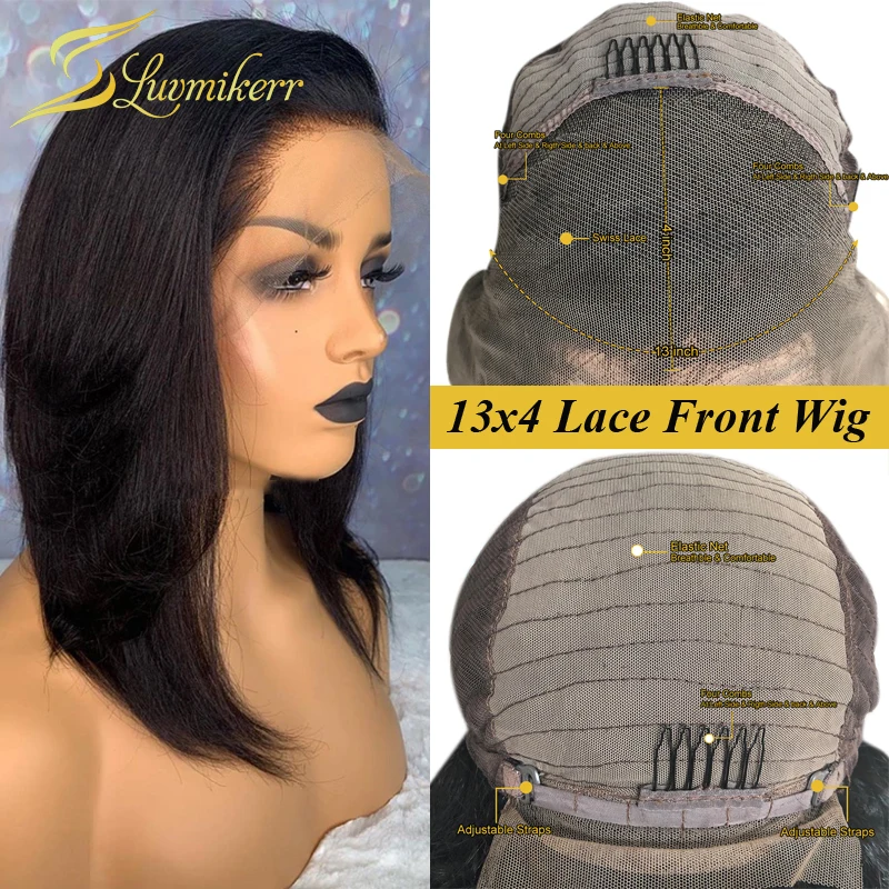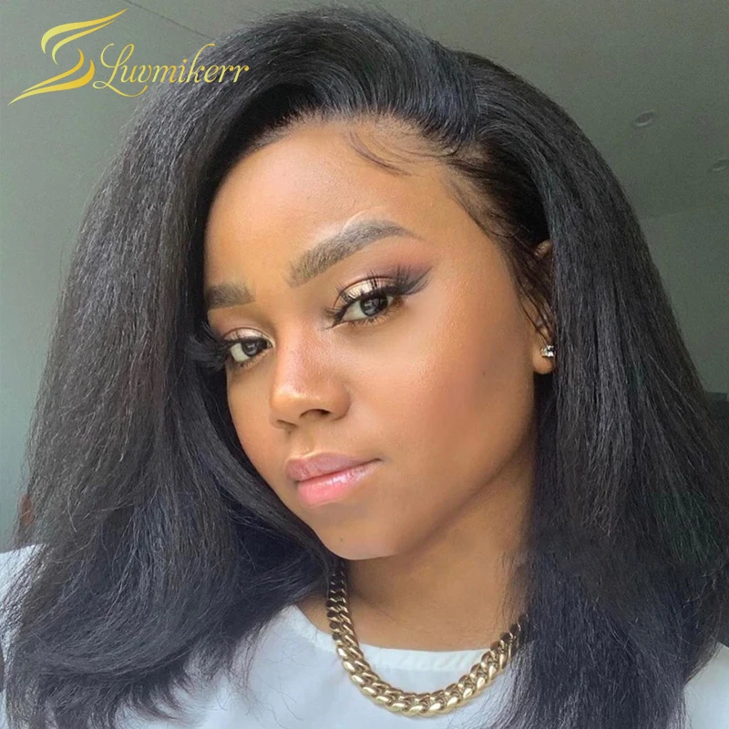 Прямые прямые волосы с тупым вырезосветильник Yaki 13X6, короткие человеческие волосы на шнурке, парики для чернокожих женщин, предварительно выщипанные кудрявые прямые бразильские полные парики на шнурке, 360 парики на шнурке