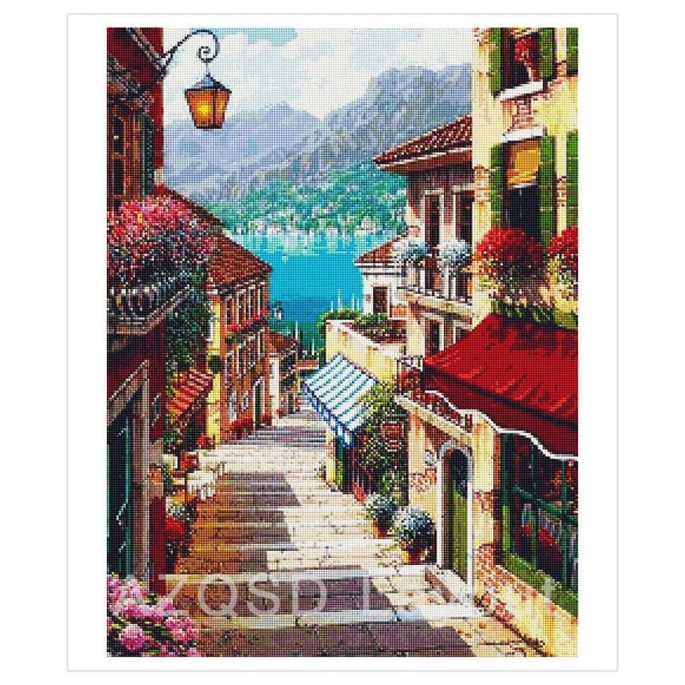 AZQSD 5D алмазная вышивка здание приморский город мозаика алмазная ...