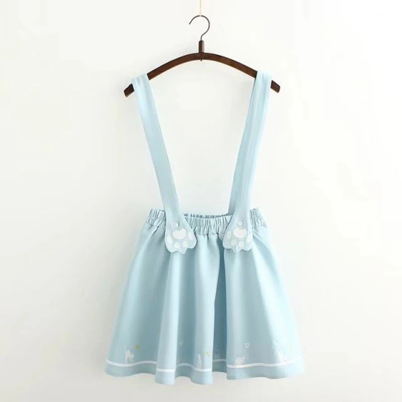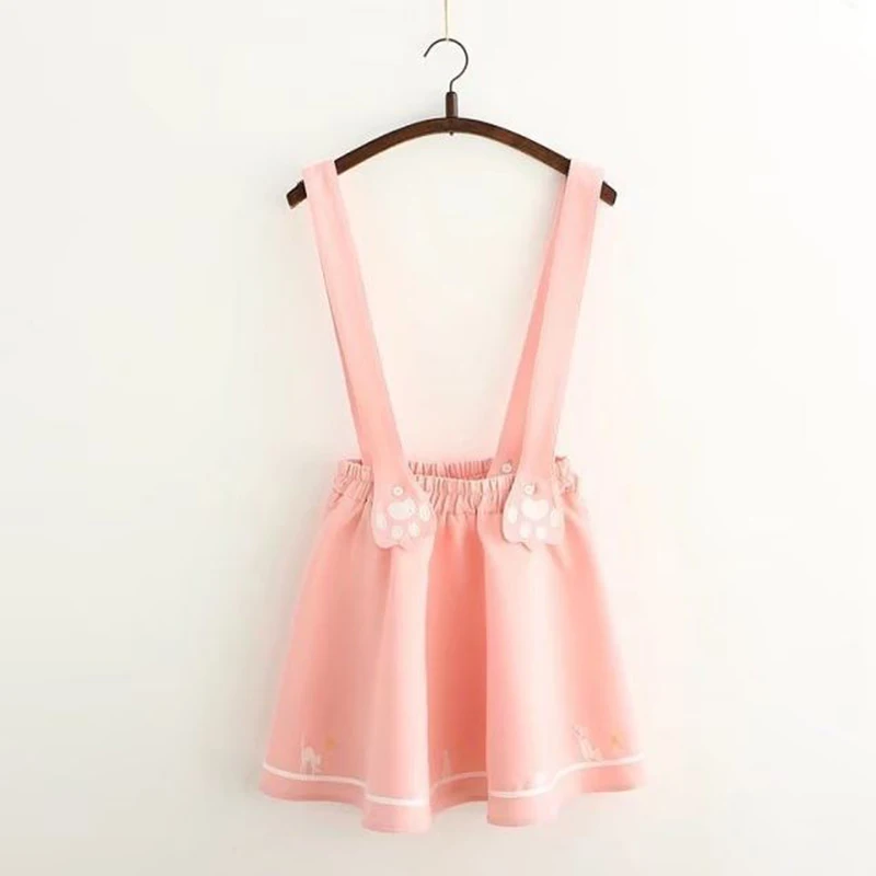 SzBlaZe кавайная юбка с вышивкой в виде кошачьей лапки, милое платье на бретелях, милая женская летняя Студенческая короткая юбка на бретелях