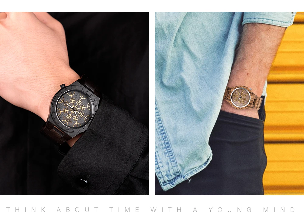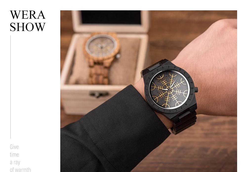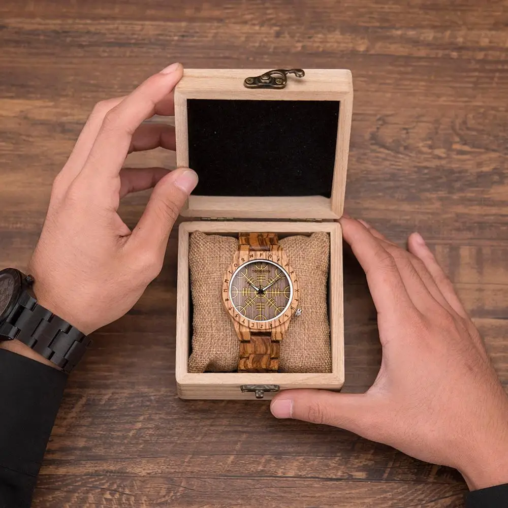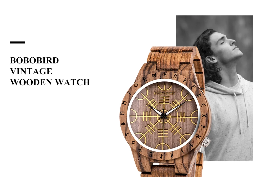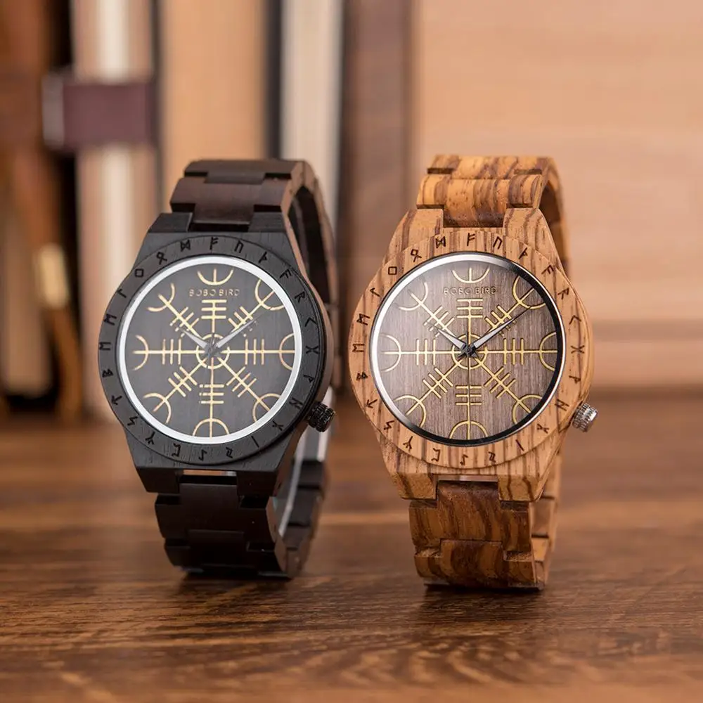 Деревянные часы BOBOBIRD со шлем Awe Aegishjalmr или Vegvisir и Runic compass, персонализированные часы мужские