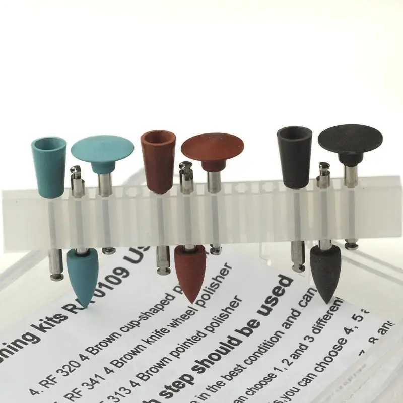 Наборы для полировки амальгамы SG1201(RA 0109), используемые для низкоскоростныхПрофиль комплекта: 9 резиновых полировщиков в каждой коробке, 1 коробка1. RF 320 2 черный полировщик в форме чашки2. РЧ 341 2 черный нож колесо полировщик3. РЧ 313 2 черный острый полировщик4. RF 320 4 коричневый полировщик в форме чашки5. RF 341 4 коричневый нож колесо полировщик6. RF 313 4 коричневый острый полировщик7. RF 320 5 синий полировщик в форме чашки8. РЧ 341 5 синий нож колесо полировщик9. RF 313 5 синий острый полировщикНиже приведены конкретные шаги.(Примечание: каждый шаг должен использоваться с рекомендуемой скоростью.)Во-первых, отрегулируйте Нос до рекомендованной скорости, полировщик должен быть в лучшем состоянии и может достичь наилучшего эффекта полировки.Первый шаг: Рекомендуемая скорость: 30000-35000; В соответствии с различными частями, вы можете выбрать 1, 2 и 3 Различные формы полировки для грубой полировки поверхности.Второй шаг: Рекомендуемая скорость: 30000-35000; В зависимости от различных частей, вы можете выбрать 4, 5 и 6 различных форм полировщика для тонкойТретий шаг: Рекомендуемая скорость: 30000-35000; В зависимости от различных частей, вы можете выбрать 7, 8 и 9 различных форм полировки для супер-тонкой полировки