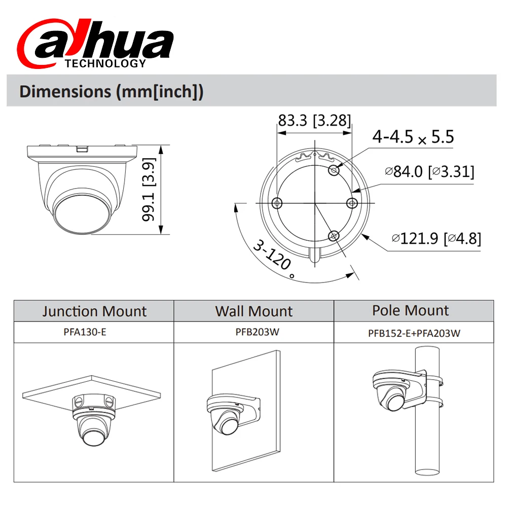 2,8 мм:Горизонтальный: 102,0 °/По вертикали: 55,0 °/Диагональ: 121,0 °3,6 мм:Горизонтальная: 84,0 °/вертикальная: 45,0 °/Диагональ: 100,0 °Тип радужной оболочки:Фиксированная диафрагмаБлизкое расстояние фокусировки:2,8 мм: 0,9 м (2,95 футов); 3,6 мм: 1,6 м (3,61 футов)3. Умное событие:Общая IVS Аналитика:Вторжение; Трос4. Видео: Сжатие видео:H.265; H.264; H.264B; MJPEGУмный кодек:ДаЧастота кадров видео:Основной поток:2688 × 1520 (1 fps-20 кадров в секунду)/2560 × 1440 (1 fps-25/30 кадров в секунду)Подпоток:/704 × 576 (1 fps-25 кадров в секунду)/704 × 480 (1 fps-30 кадров в секунду)Возможности потока:2 потокаРазрешение:2688 × 1520 (2688 × 1520); 2560 × 1440 (2560 × 1440); 2304 × 1296 (2304 × 1296); 1080p (1920 × 1080); 1,3 м (1280 × 960); 720p (1280 × 720); D1 (704 × 576/704 × 480); VGA (640 × 480); CIF (352 × 288/352 × 240)Контроль скорости бит:CBR/VBRСкорость передачи видео:H.264: 32 Kbps-6144 кбит/с/H.265: 12 Kbps-6144 кбит/сДень/Ночь:Авто (ICR)/цвет/B/WBLC:ДаHLC:ДаWDR:120 дББаланс белого:Авто/натуральная/уличная лампа/наружная/ручная/на заказКонтроль усиления:Авто/руководствоСнижение уровня шума:3D DNRОбнаружение движения:Выкл/вкл (4 зоны, прямоугольные)Регион интересов (RoI):Да (4 области)Умный ИК:ДаВращение изображения:0 °/90 °/180 °/270 ° (поддерживает 90 °/270 ° с разрешением 1080p.)Зеркало:ДаМаскировка конфиденциальности:4 зоны5. Аудио:Встроенный микрофон:ДаСжатие звука:G.711A; G.711Mu; G.726; AAC6. Сеть:Сеть:RJ-45 (10/100 Base-T)Протокол:Протокол IPv6; HTTP; HTTPS; TCP; UDP; ARP; RTP ; RTSP; RTCP; RTMP; SMTP; FTP; SFTP; DHCP; DNS; DDNS; QoS; UPnP; NTP; многоадресная рассылка; ICMP; IGMP; NFS; PPPoE; 802.1x; BonjourСовместимость:ONVIF (профиль S/Профиль G);CGI;P2P;Milestone;GenetecПользователь/хост:20Хранение краев:Облако; FTP; SFTP; Micro SD карта (поддержка макс. 256 ГБ); NASБраузер:IE/Хром/FirefoxПрограммное обеспечение для управления:Смарт PSS; DSS; DMSSМобильный телефон:IOS; Android7. Сертификация:Сертификаты:CE-LVD: EN60950-1CE-EMC: Директива о электромагнитной совместимости 2014/30/EUFCC: 47 CFR FCC часть 15, Subpart B8. Мощность: Источник питания:12V DC/PoE (802.3af)Потребляемая мощность:<6,6 Вт9. Окружающая среда: Условия эксплуатации:От-40 °C до + 60 °C (от-40 °F до + 140 °F)/менее≤95%Температура хранения:От-40 °C до + 60 °C (от-40 °F до + 140 °F)Защита:IP6710. Структура:Корпус:МеталлРазмеры:99,1 мм × 12121,9 мм (3,9 "× Φ4.8")Вес нетто:0,48 кг (1,1 фунтов)Вес брутто:0,65 кг (1,4 фунтов)