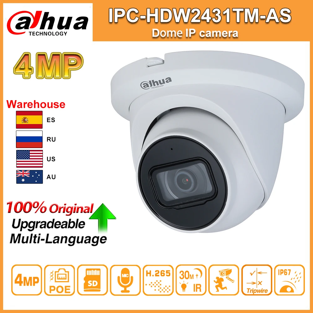 Dahua оригинальный IPC-HDW2431TM-AS 4MP HD POE Встроенный микрофон SD слот для карт H.265 IP67 30 м ИК Starlight IVS обновляемая купольная IP камера