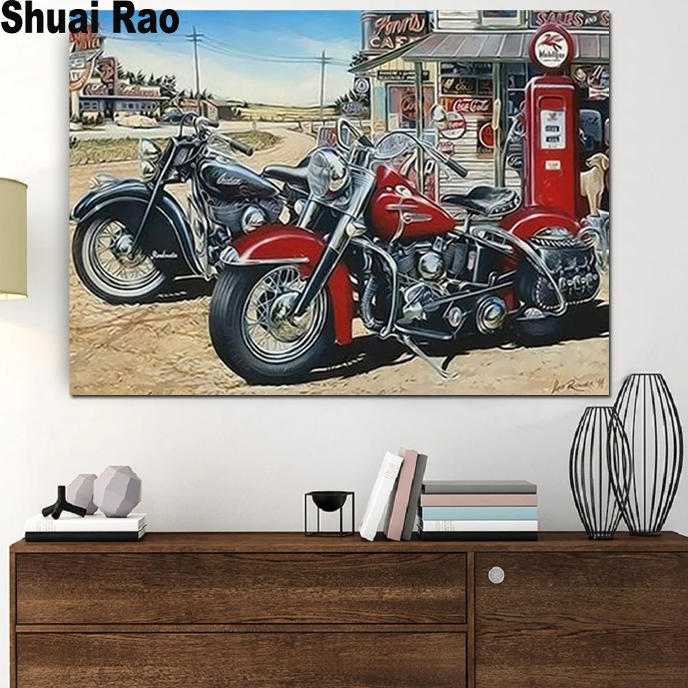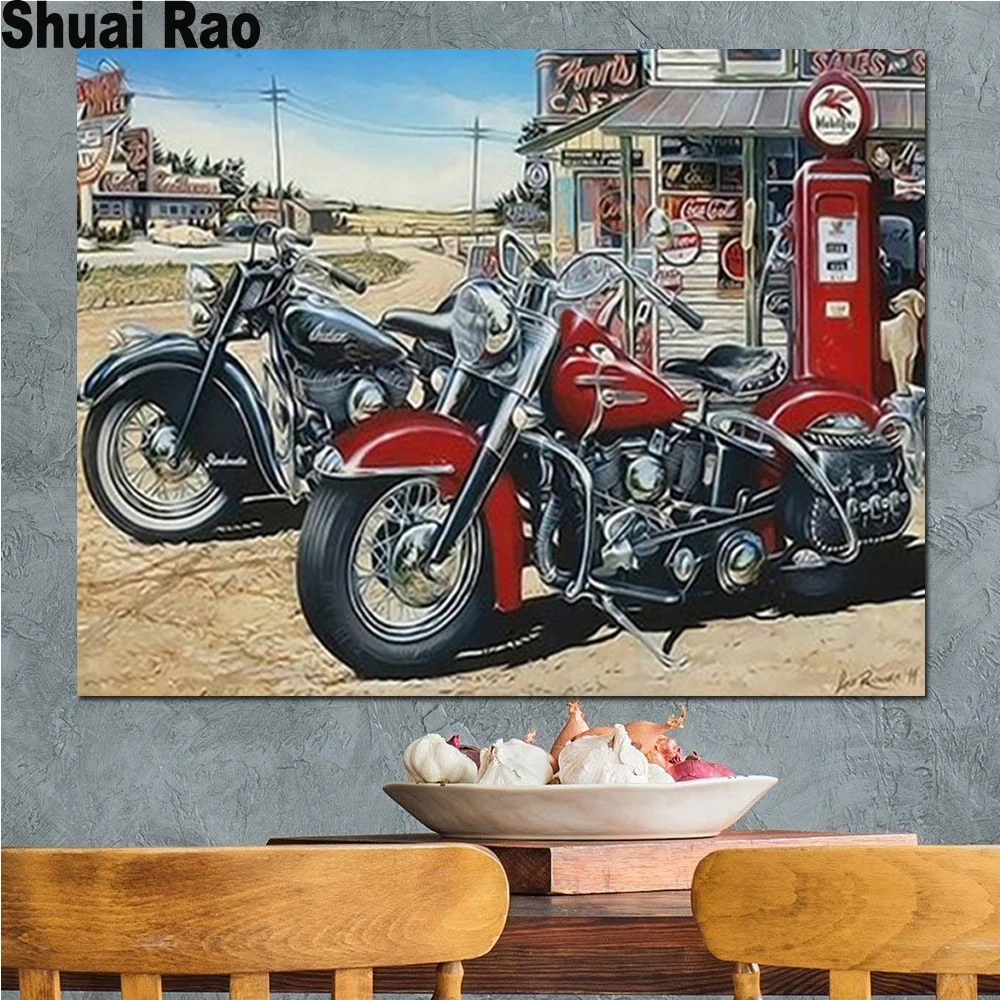 Хобби мотоцикл Алмазная мозаика полный квадраткруглый 5d diy Алмазная картина автомобиль АЗС Алмазная вышивка наклейки на стену,