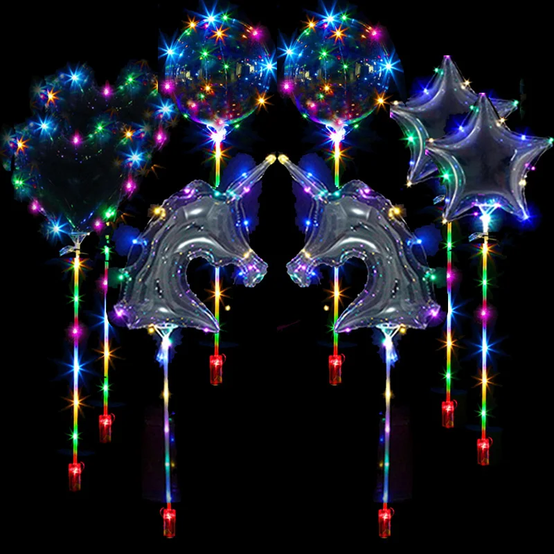 Прозрачные светодиодные шары в виде единорога, круглые в форме сердца и звезд, прозрачные светящиеся шары с палочкой, украшения на свадьбу на день рождения, товары для вечерние