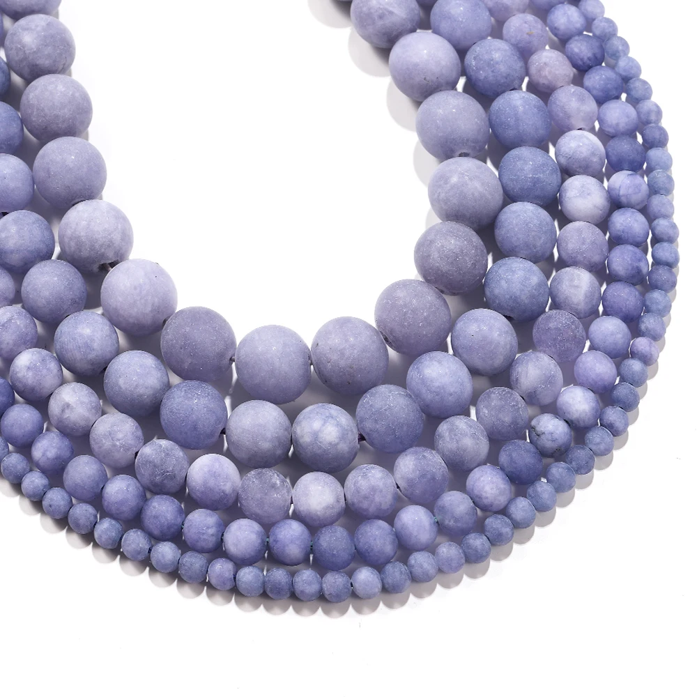Круглые бусины из натурального камня, матовый синий халцедон, аквам...