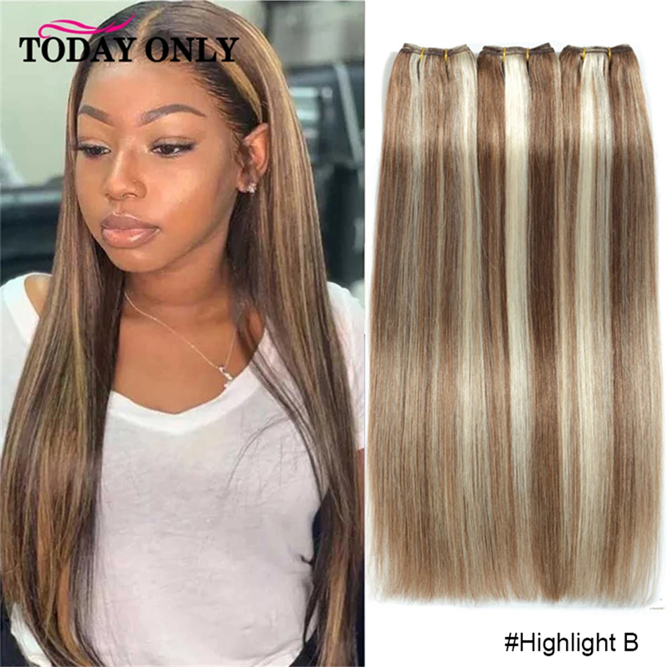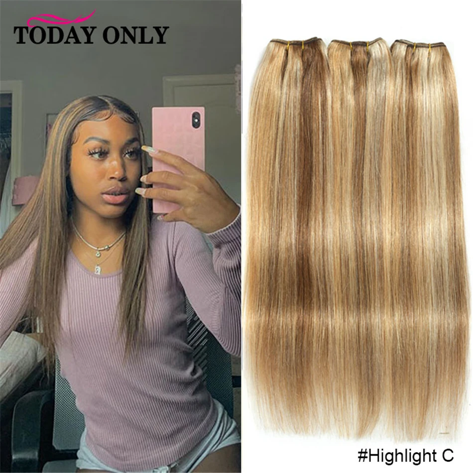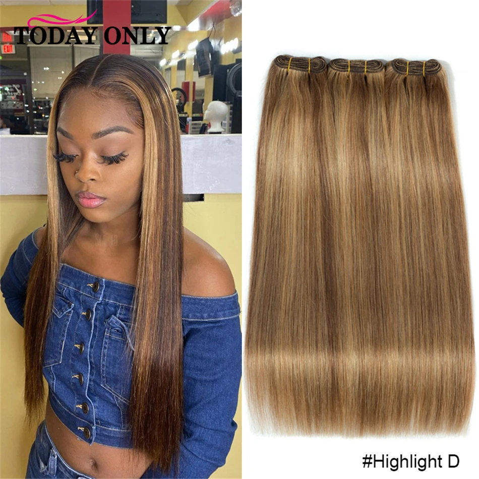 Пряди волос для наращивания прямые волосы бразильские пучки волнистых волос 134Highlight медовый блонд коричневый цвет пианино Реми человеческие волосы