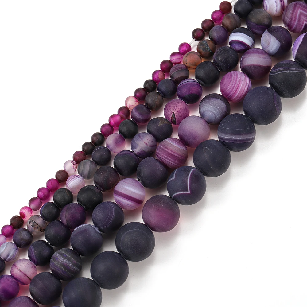 1 нить натурального камня, матовая фиолетовая полоса, Агат Оникс круглых бусин 6, 8, 10 мм, размер на выбор, аксессуары для изготовления ювелирных изделий