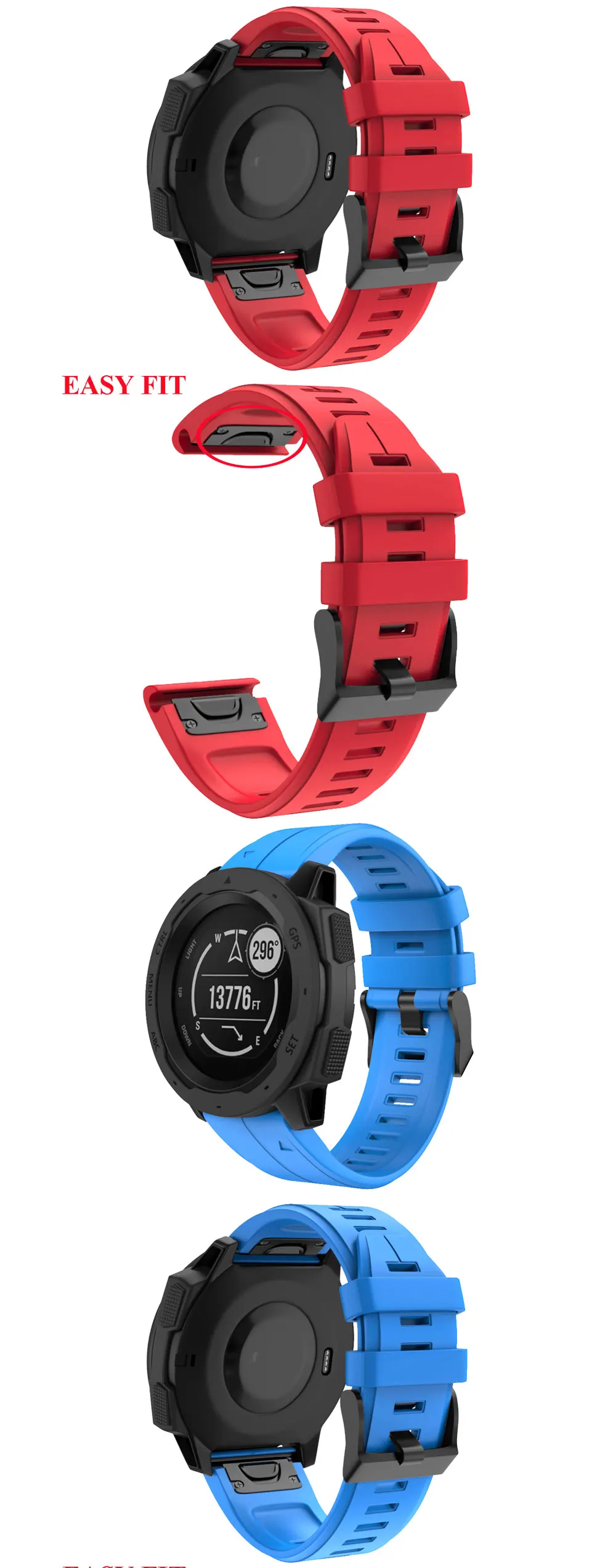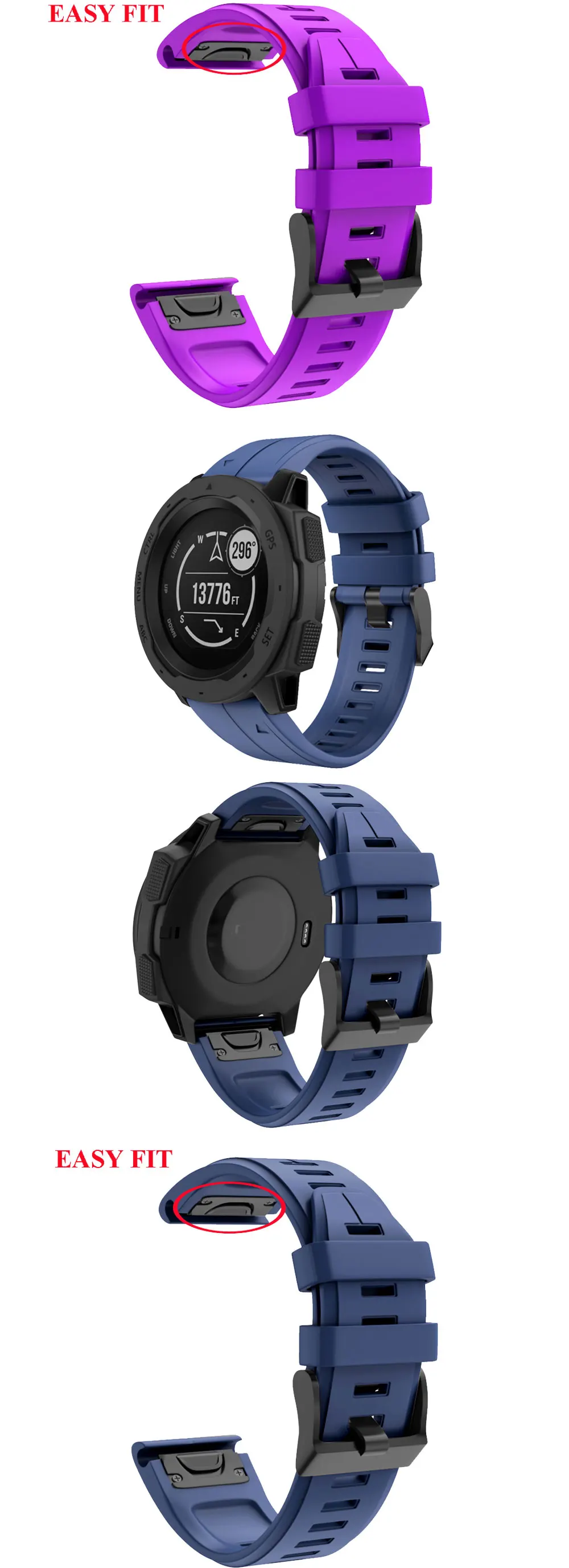 26 мм спортивный силиконовый ремешок для наручных часов Garmin Fenix 5X 5 5S Plus 20 22 мм, легко устанавливается, быстро снимается