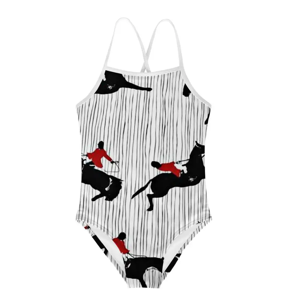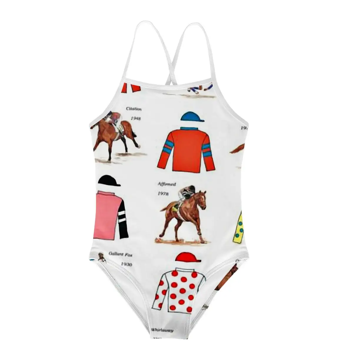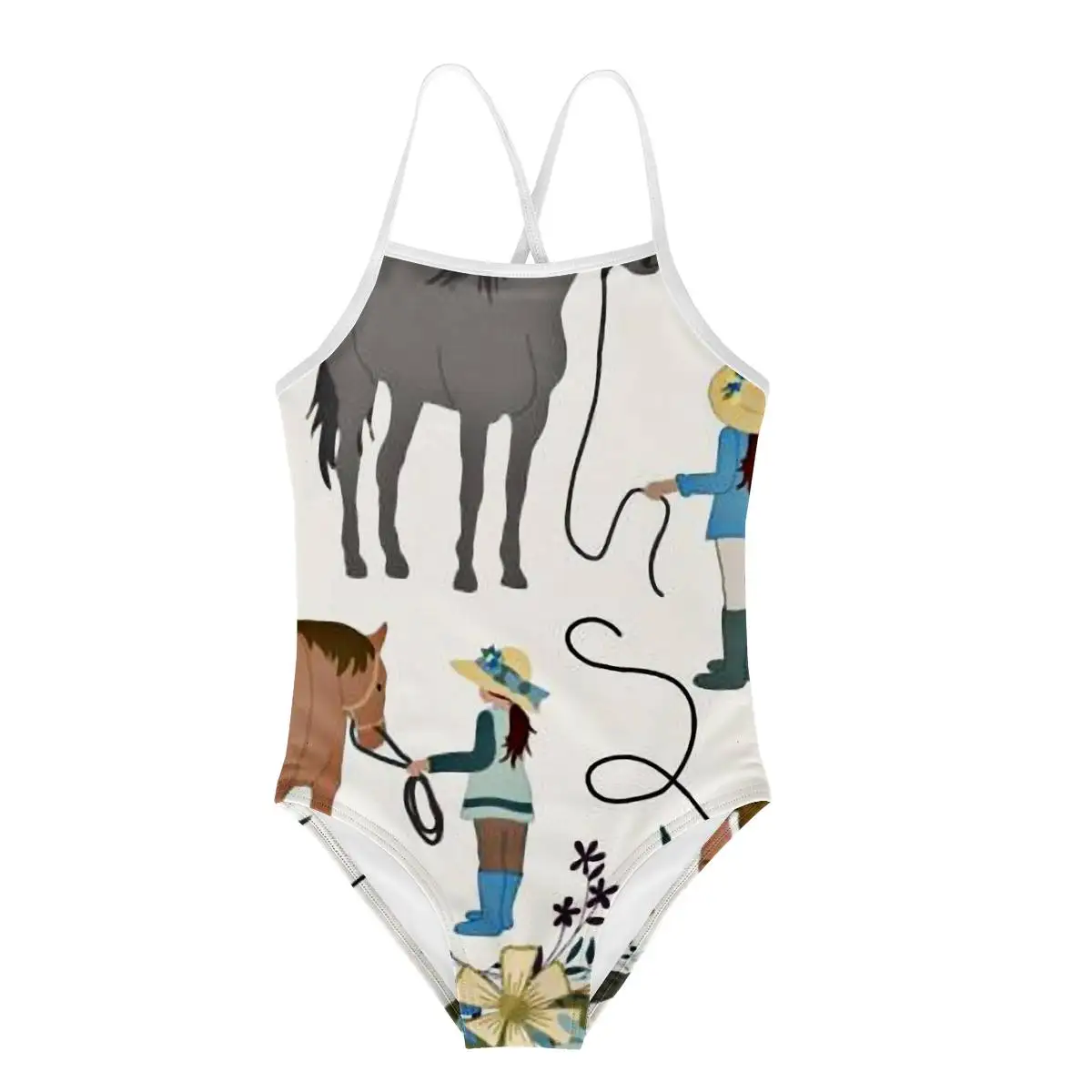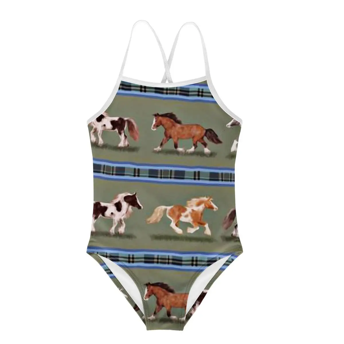 Детский слитный купальник HYCOOL, купальный костюм в полоску, с принтом лошади, для маленьких девочек-подростков