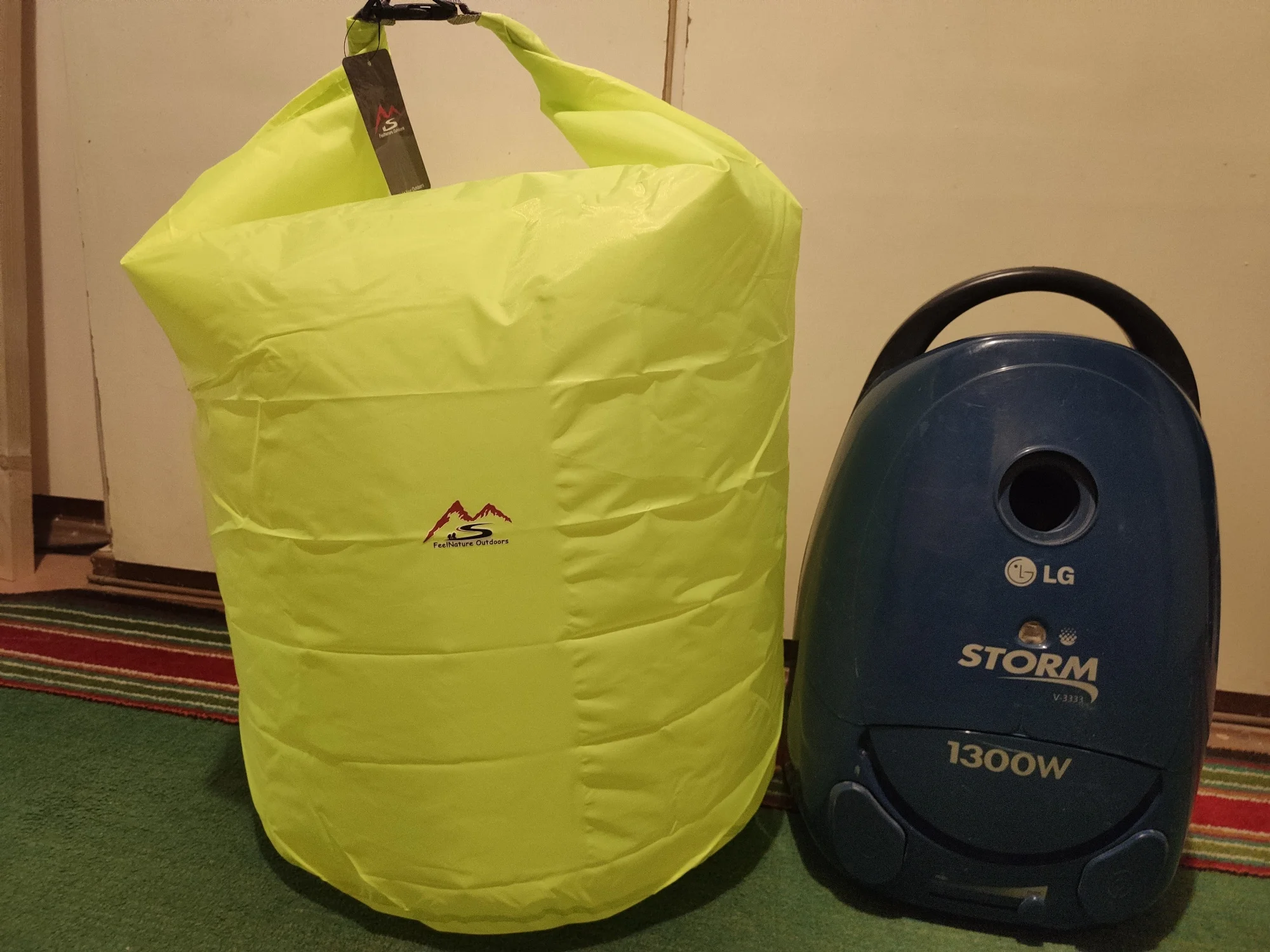 хороший мешок. Воздух не пропускает, соответственно и воду тоже. Я покупал 20 л, это вполне хватит, чтобы положить в него одежду в походе и убрать его в рюкзак.