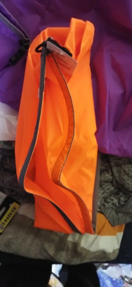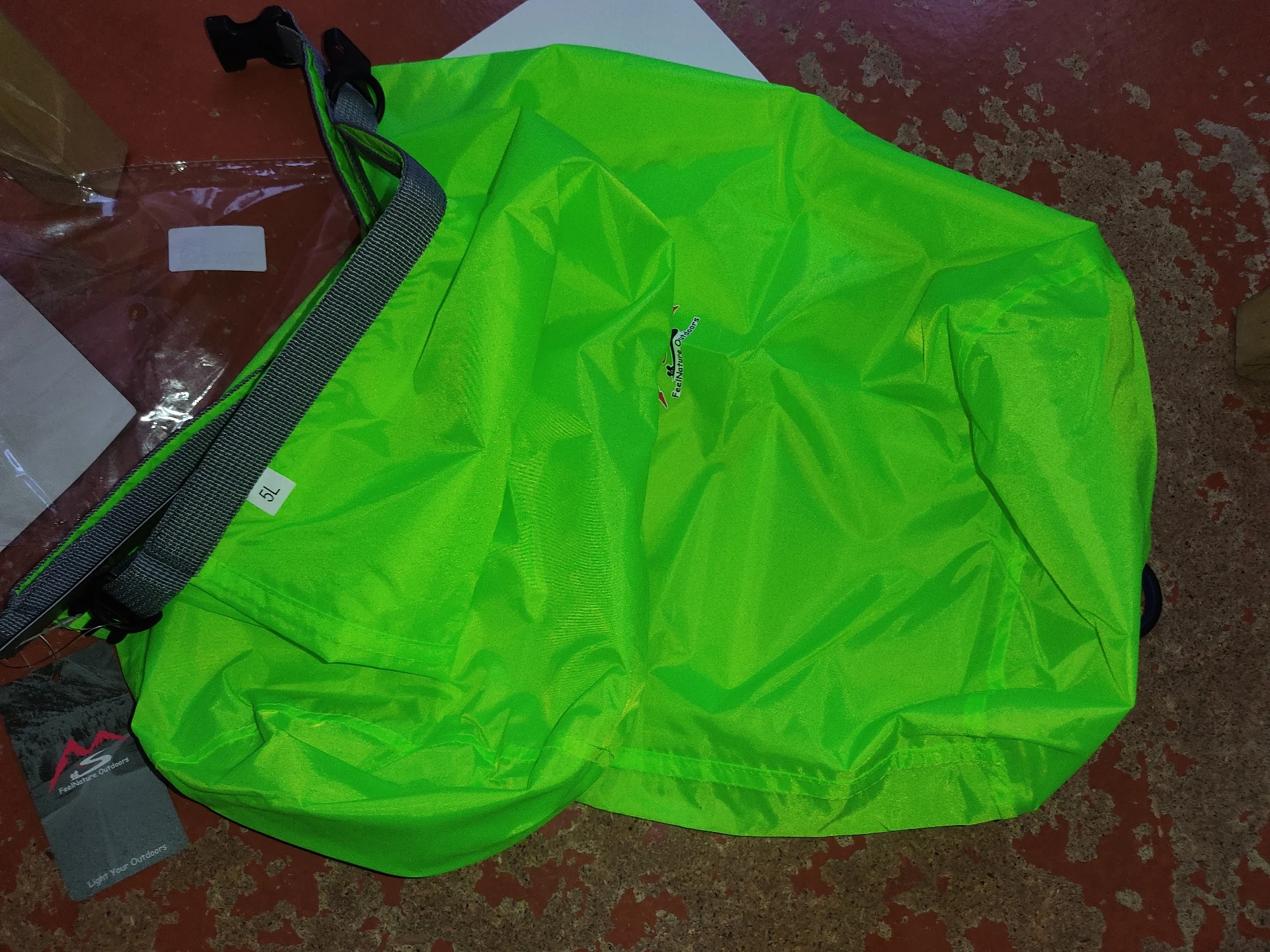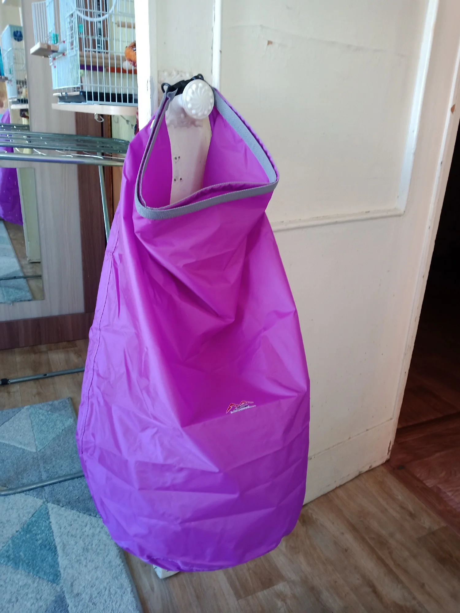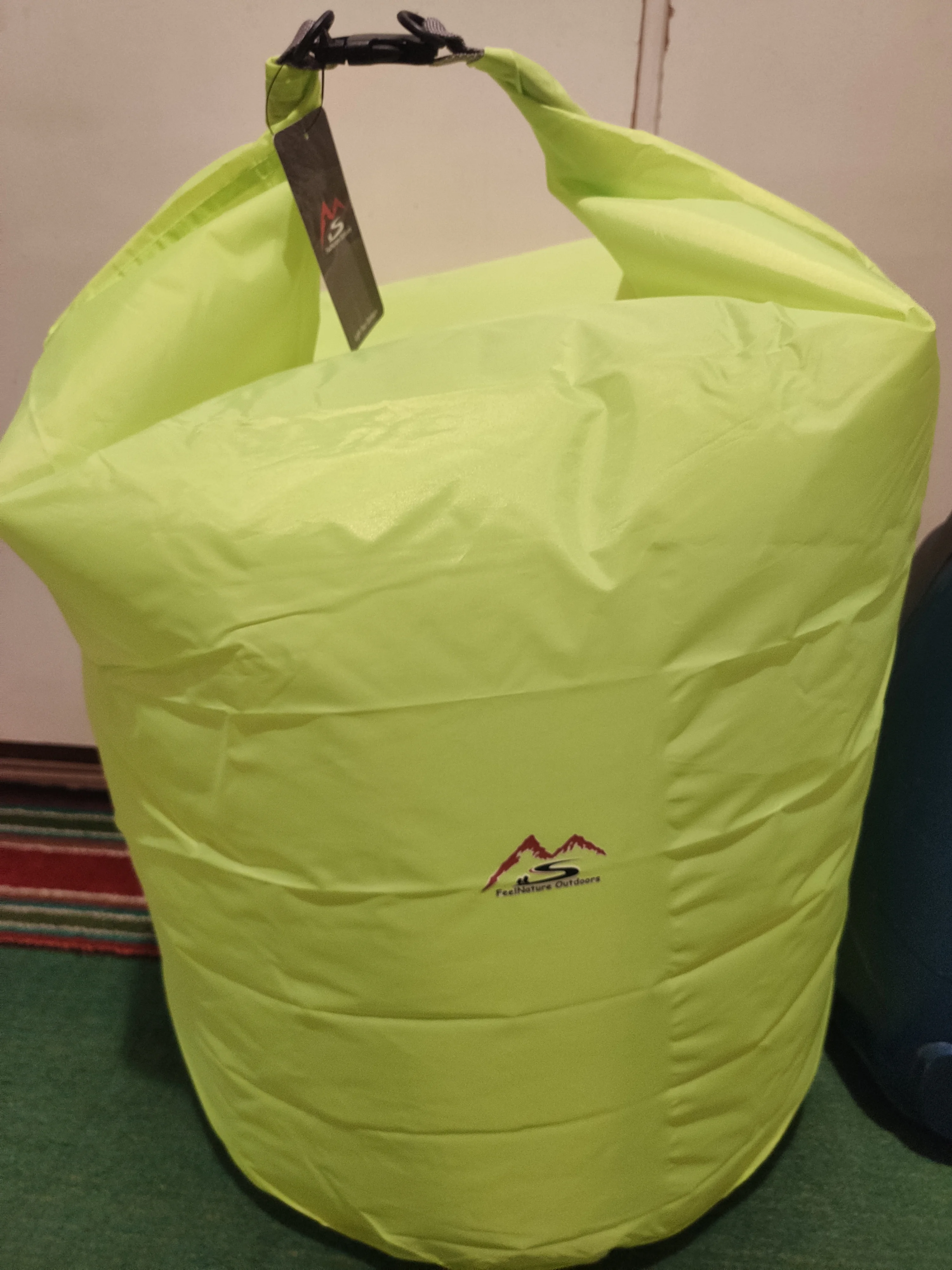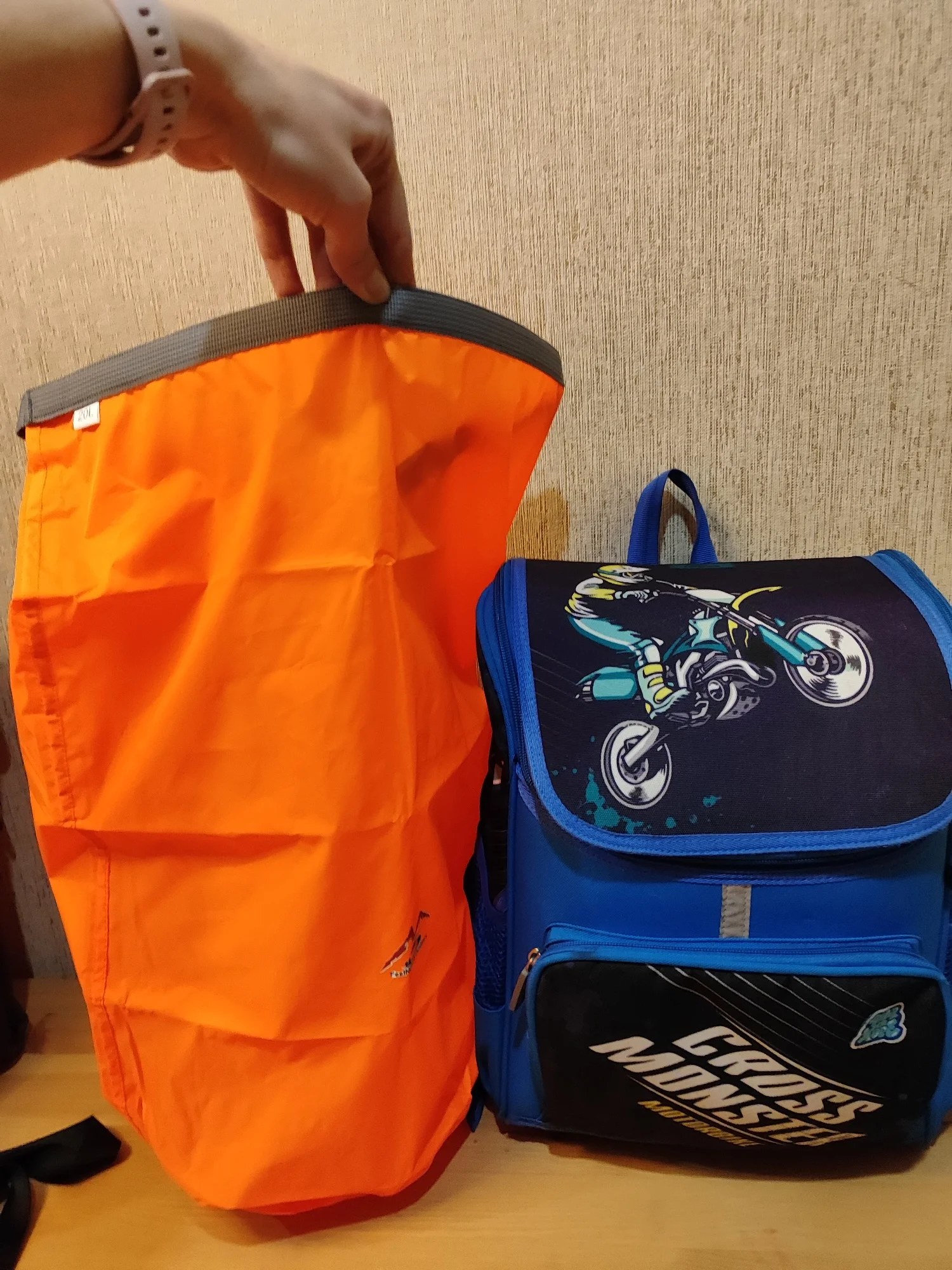 + Яркий - кольца для подвеса хотелось бы толще + вместительный. Для перепаковки рюкзака в дождь подойдёт для сохранения вещей от намокания на некоторе время. + достаточно компактный в сложенном виде - если не дождь, а долгое лежание в луже или плавание в озере не выдержит - пропустит воду. тут уже их пвх подойдут, но они тяжелее и объёмнее.