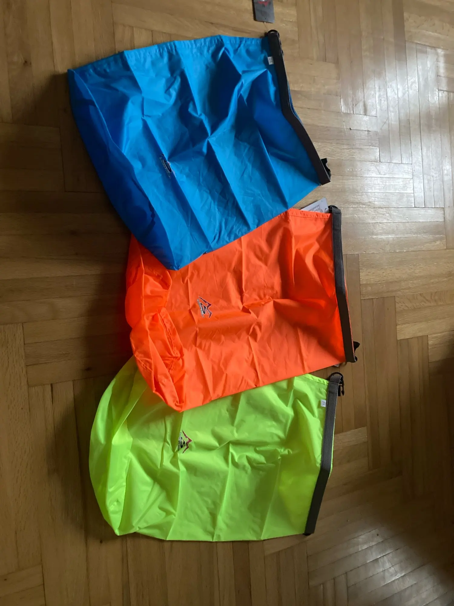Заказал один на 70л, два на 20л. Думаю что этого маловато для выезда на водные прогулки с семьёй. Дозакажу пока еще один на 70 и парочку на 5л, а летом ещё видно будет. То что мешки тонкие, в этом тоже есть достоинство. Занимают меньше места и можно использовать их как подушки для отдыха. Яркий цвет мешков поможет не потерять вещи, особенно когда собираешься в сумерках. Рекомендую!