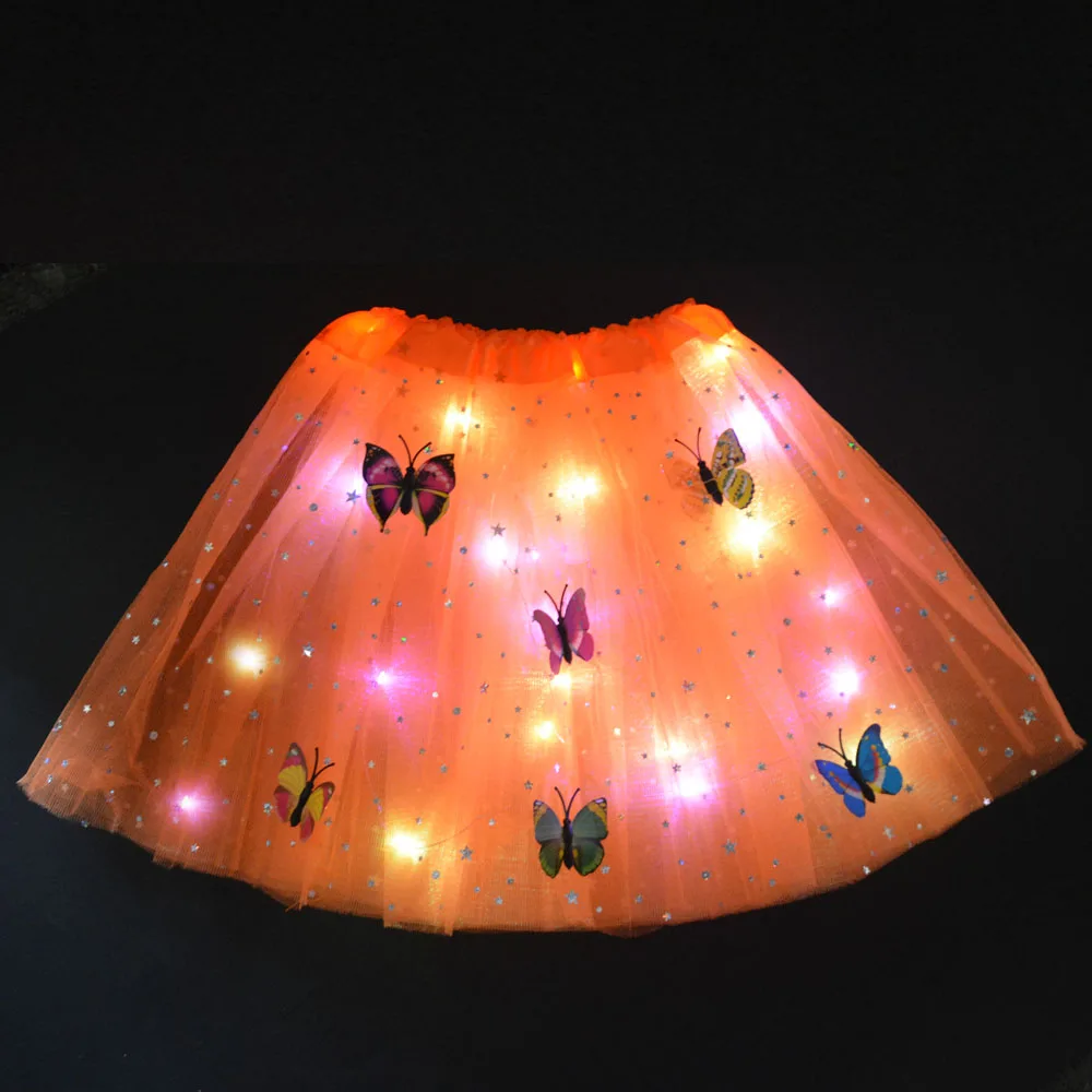 Детская светящаяся неоновая юбка-пачка со светодиодный Дой и бабочкой