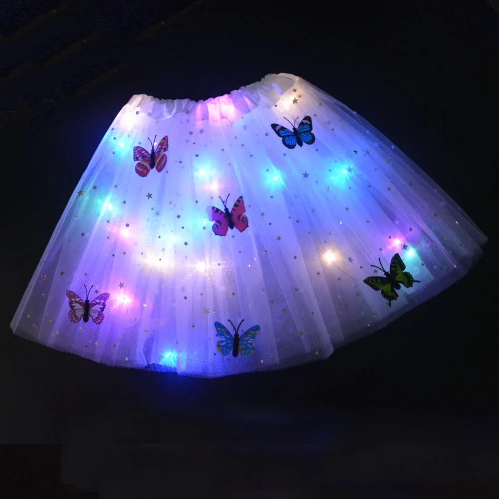 Женская светящаяся бабочка со светодиодной подсветкой, юбка-пачка со звездами и бабочками, светящееся балетное танцевальное платье, шапка с деревом, костюм, подарок на Пасху