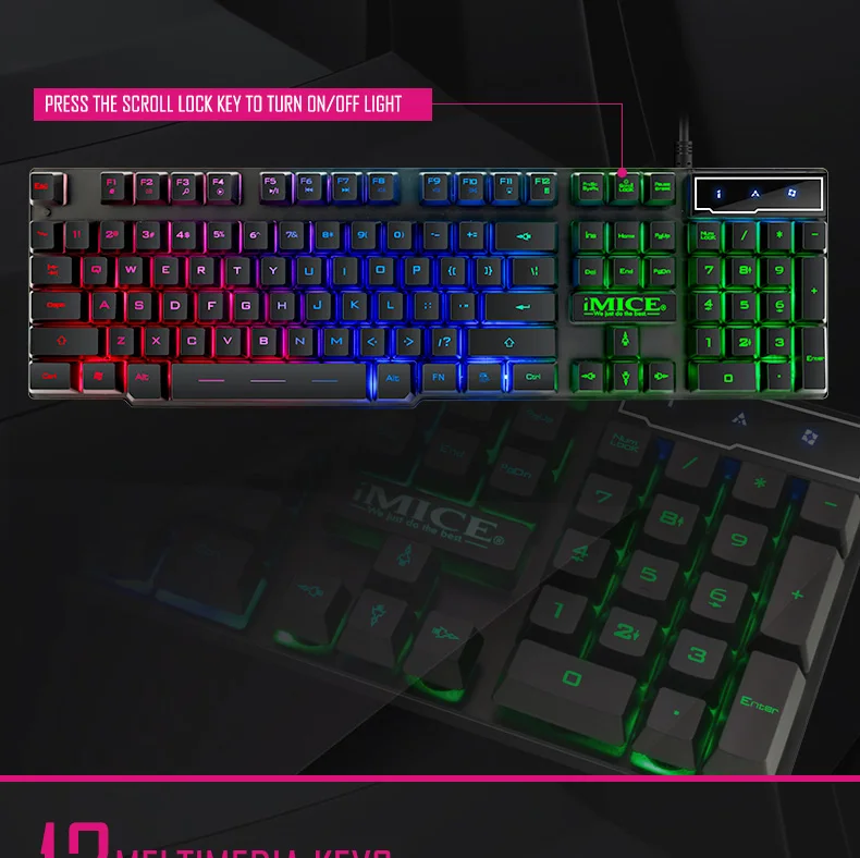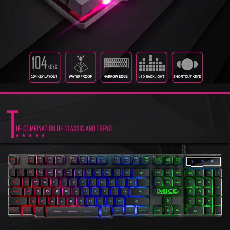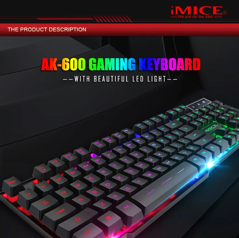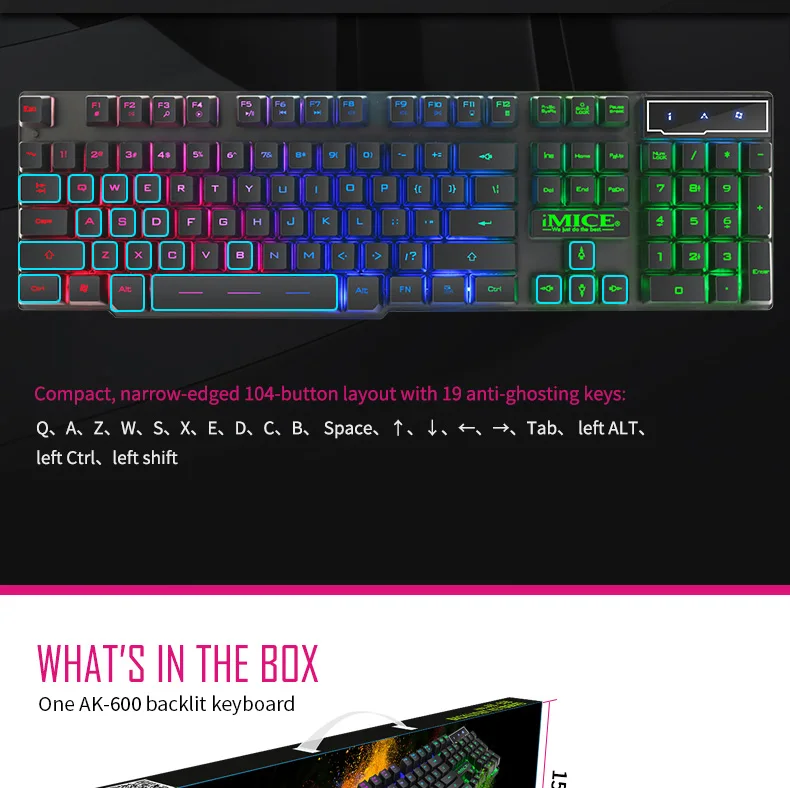 Игровая клавиатура iMice AK600 с RGB-подсветкой, Водонепроницаемая клавиатура с 104 кейкапами, английская и Русская раскладка