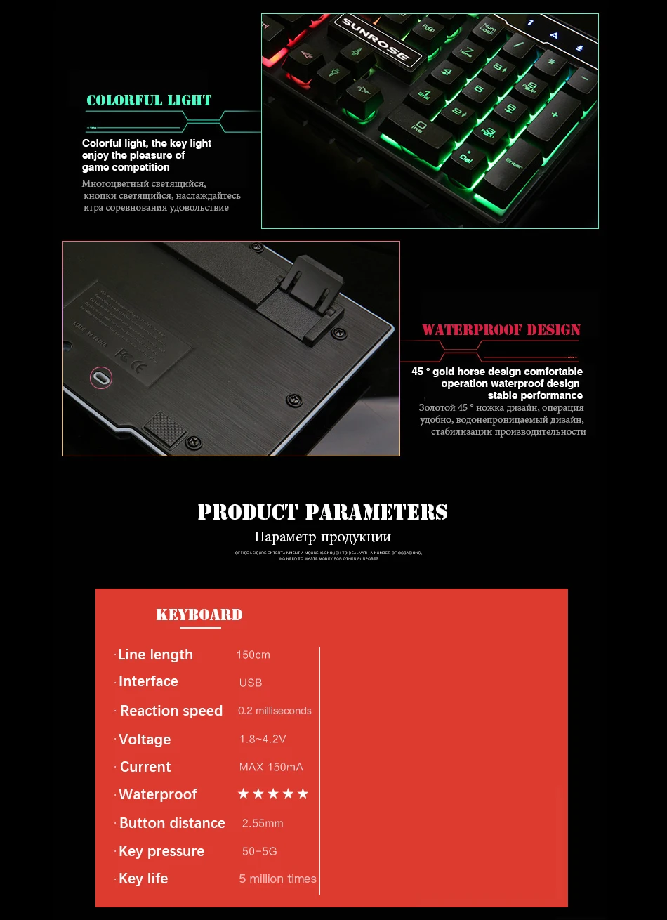 Тип изделия: Стандартная Люминесцентная клавиатураИнтерфейс: USB проводнойНомер ключа: 104 ключаТип провода: пластиковая медьПодсветка: RGBКолпачок для ключей: шлифовальный материалКоврик для ключей: силиконВодонепроницаемость: крышка для ключа подвески + отверстие для направляющей жидкостиПоддержка системы: Windows xp/Vista/Win7/8/10 Mac OS XВес нетто: 510 гРазмер: 442*133*30 ммДлина провода: 130 см