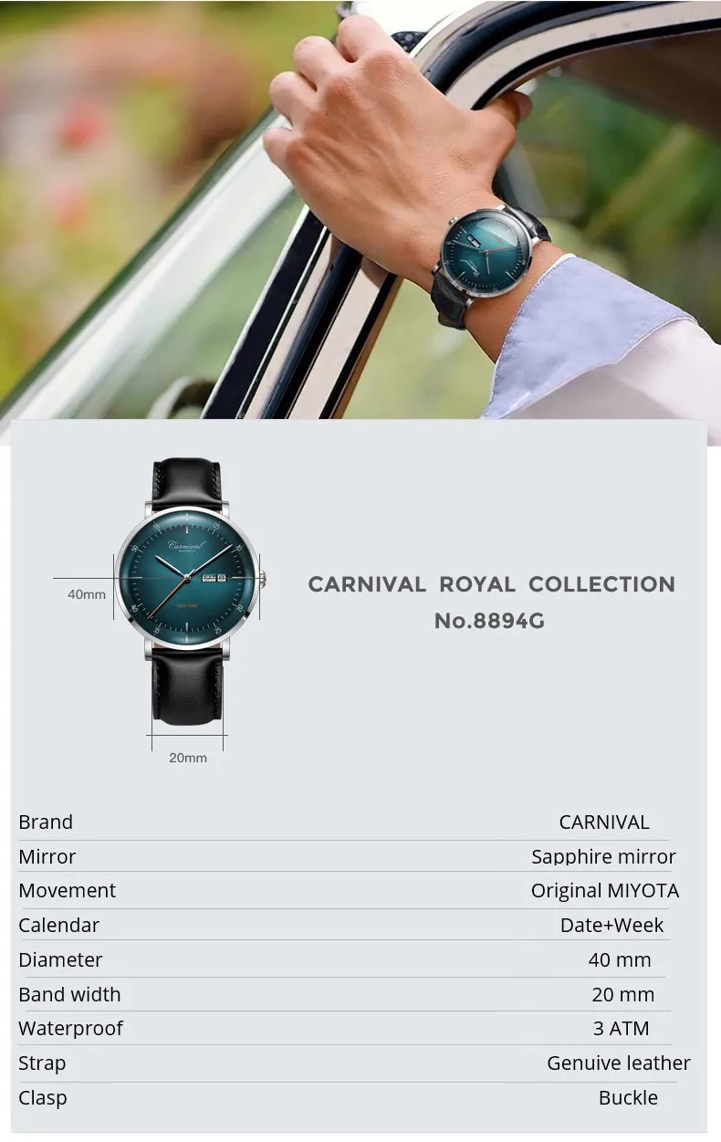 Часы наручные MIYOTA Мужские механические, брендовые Роскошные водонепроницаемые с автоматическим механизмом и календарем, для карнавала