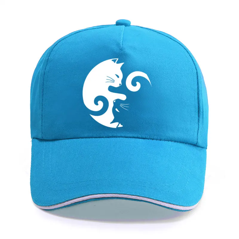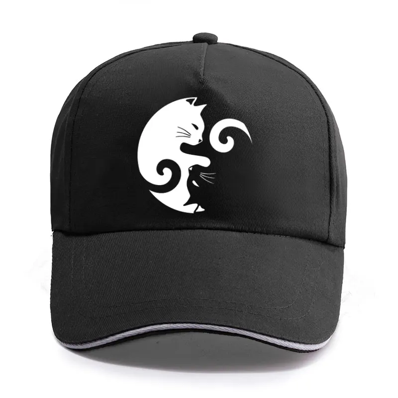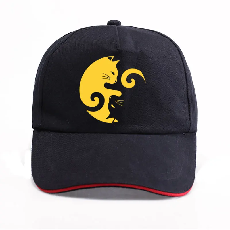 Хлопковые бейсболки для дальнобойщиков Tai Chi, черно-белая облегающая бейсболка для мужчин и женщин, унисекс модные Мультяшные шапки с животными для кошек