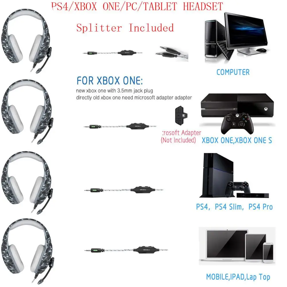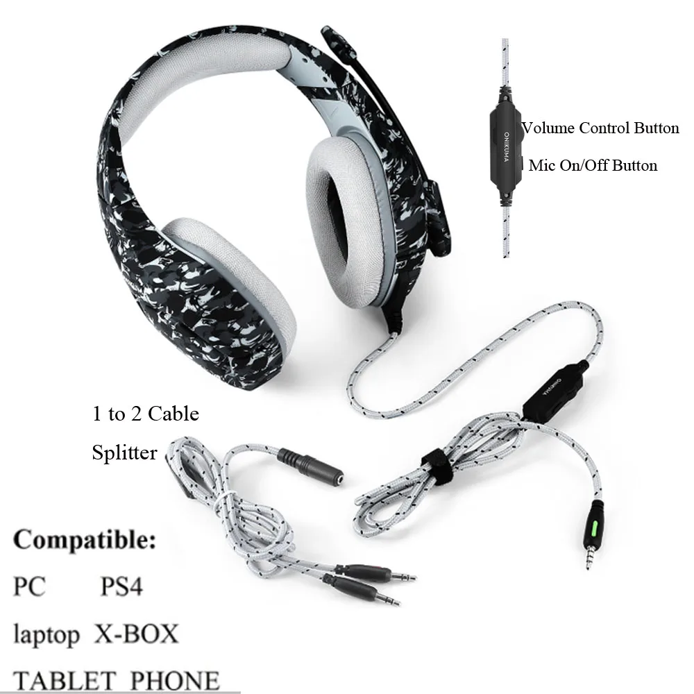 Камуфляжные Игровые наушники для PS4, проводные стерео басовые наушники 3,5 мм, шлем с микрофоном и игровые мыши для PS4, ПК, геймеров, XBOX