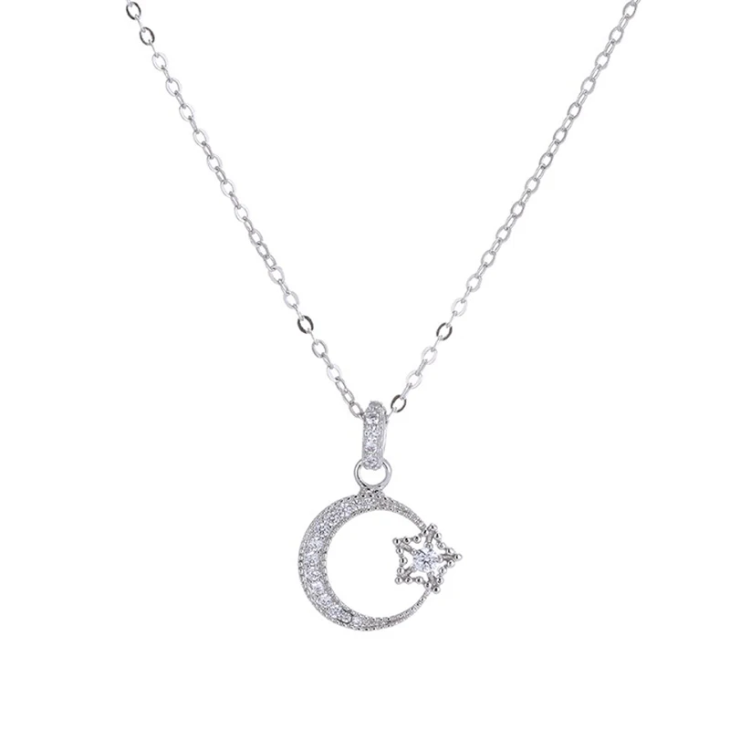 Трендовые ожерелья и кулоны из стерлингового серебра 925 пробы Микро кубический циркон Луна Звезда колье ожерелье для женщин Свадебная вечеринка ожерелье Материал: серебро 925 пробы Состояние: 100% новый бренд Повод: вечерние/Свадебные/Помолвочные/День рождения/День Святого Валентина/День Матери Размер подвески: как показано