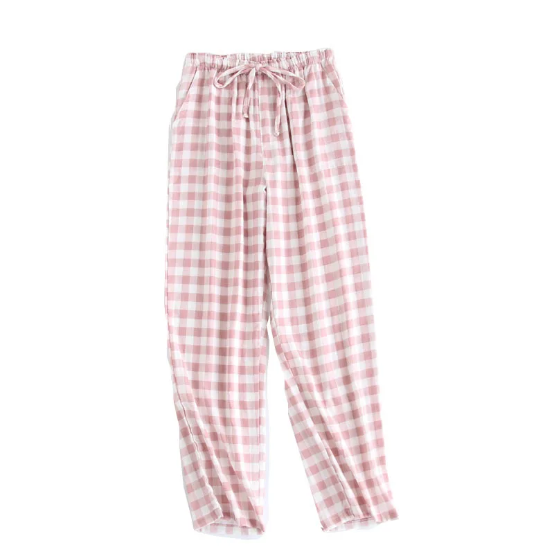 Летняя женская пижама, трикотажные хлопковые брюки, мужские и женские клетчатые брюки, свободные повседневные штаны для сна, одежда для сна, штаны, Пижама