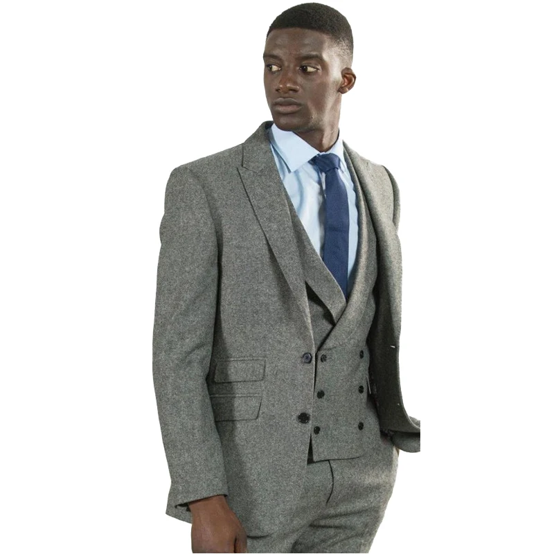 Мужской твидовый костюм, приталенный Свадебный костюм из 3 предмето...