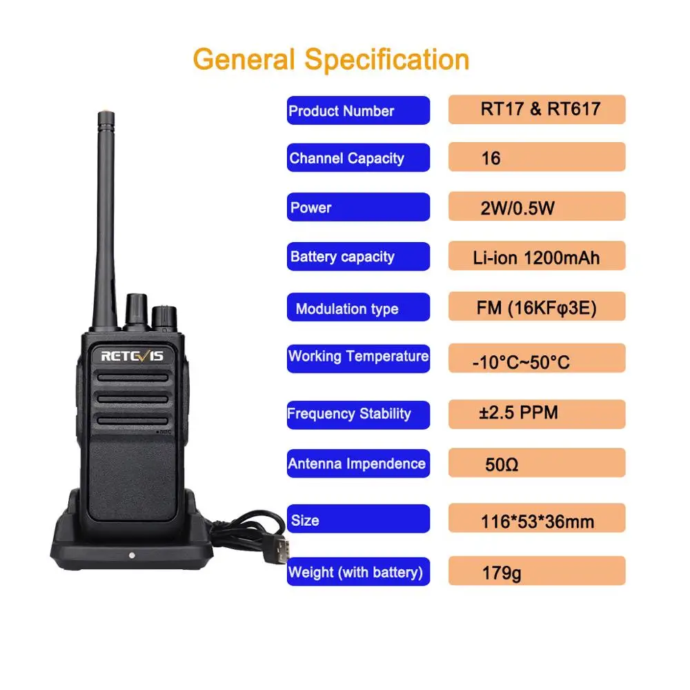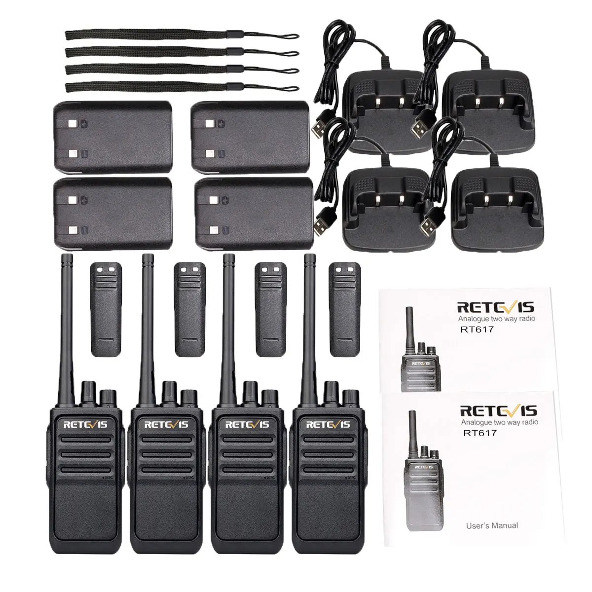 Рации Retevis RT617RT17 4 шт., PMR радиостанция, приемопередатчик, VOX, зарядка через USB, 4 шт.