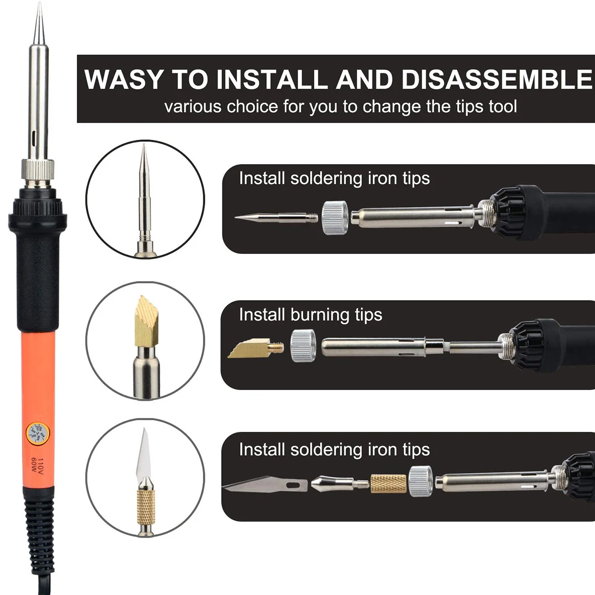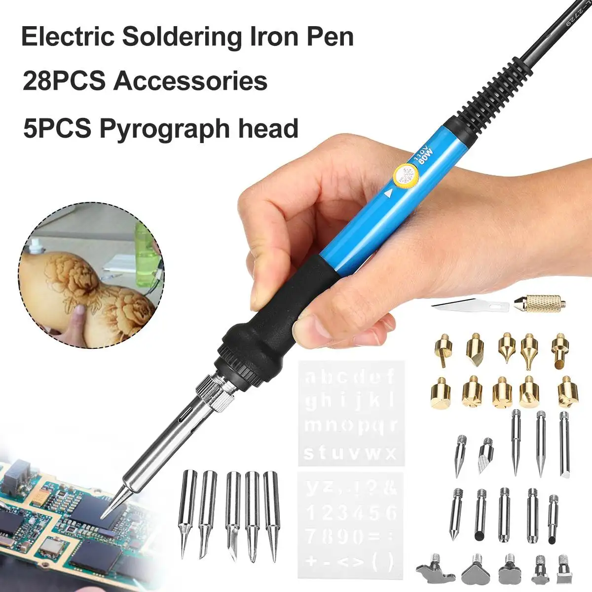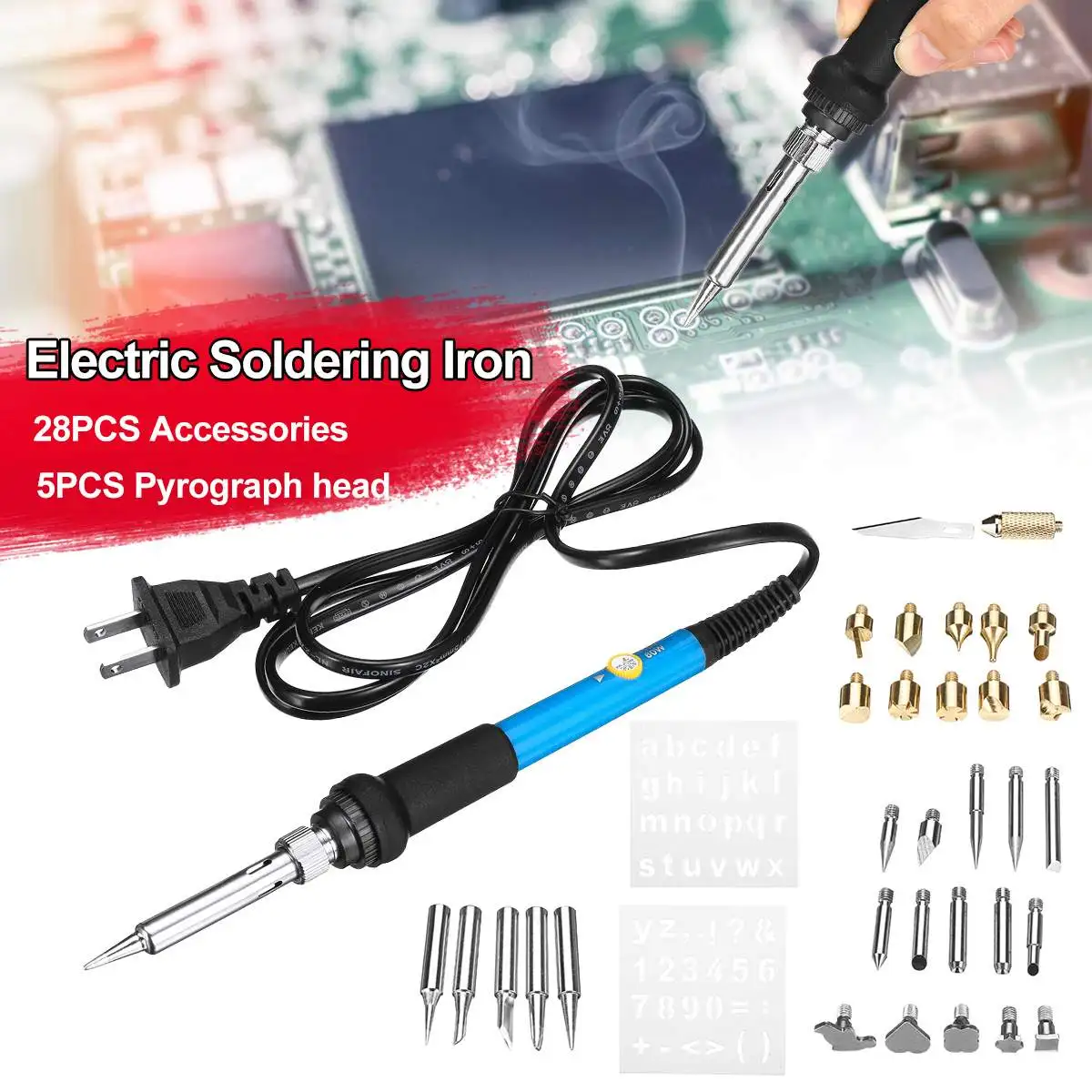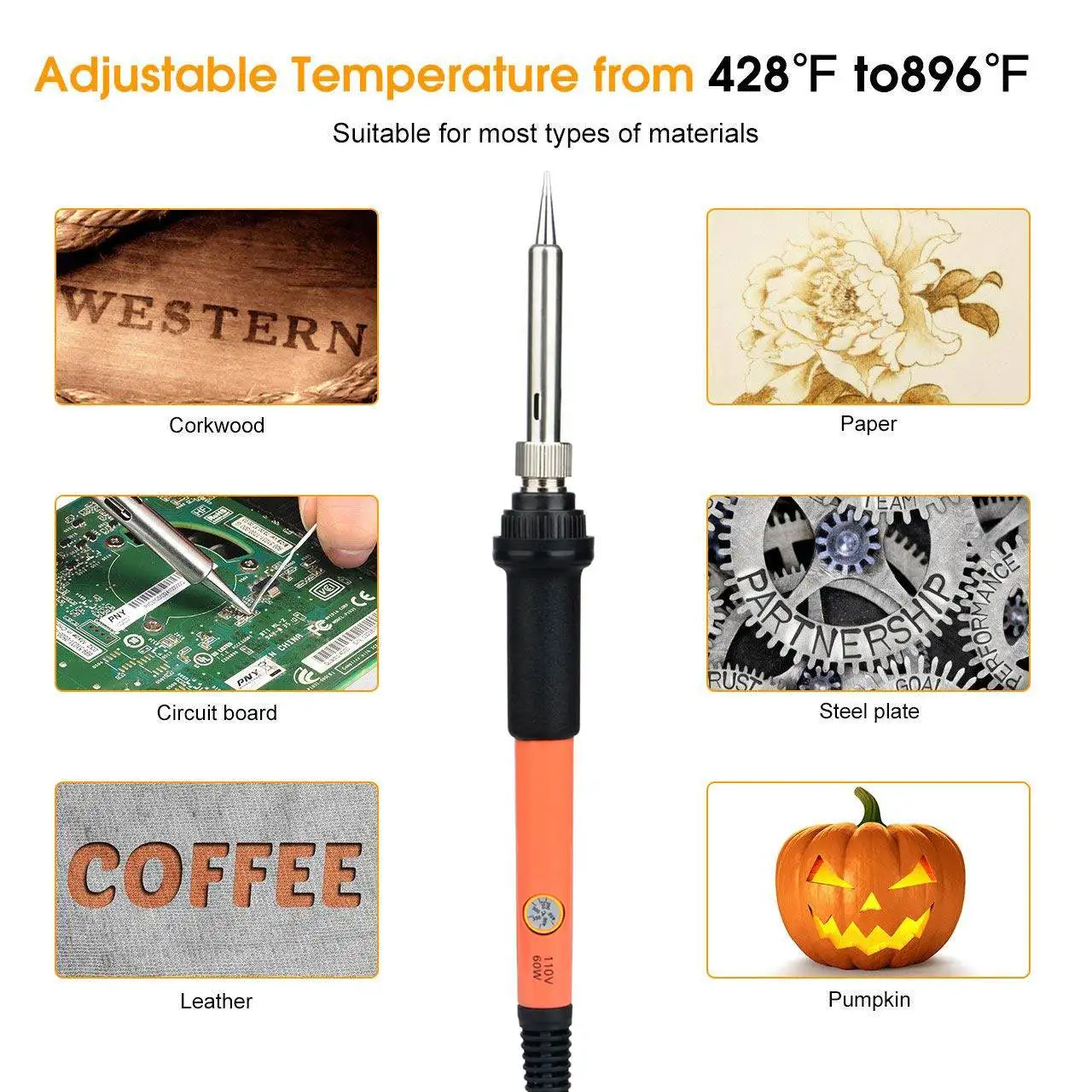 60 Вт Электрический Регулируемый температурный сварочный паяльник НАБОР РЕЗНОЙ инструмент для пирографии
