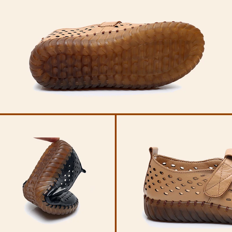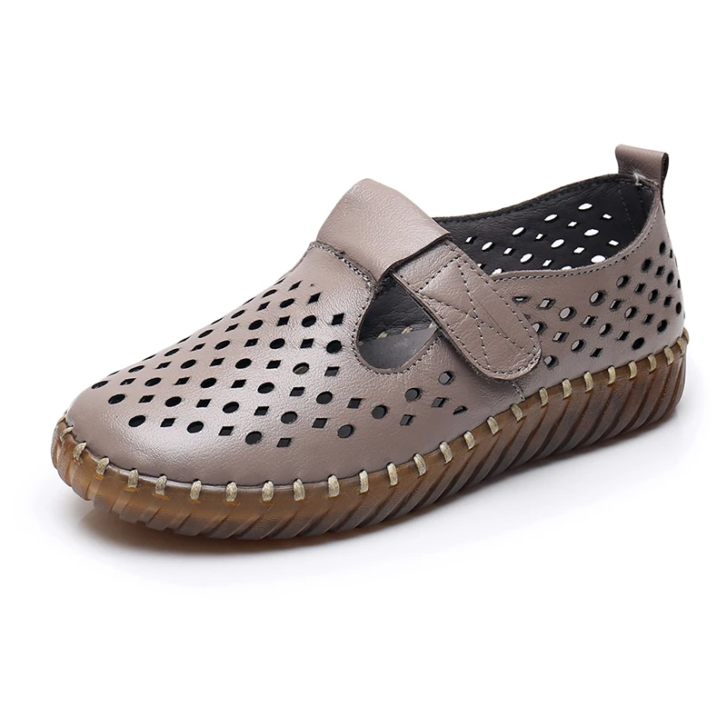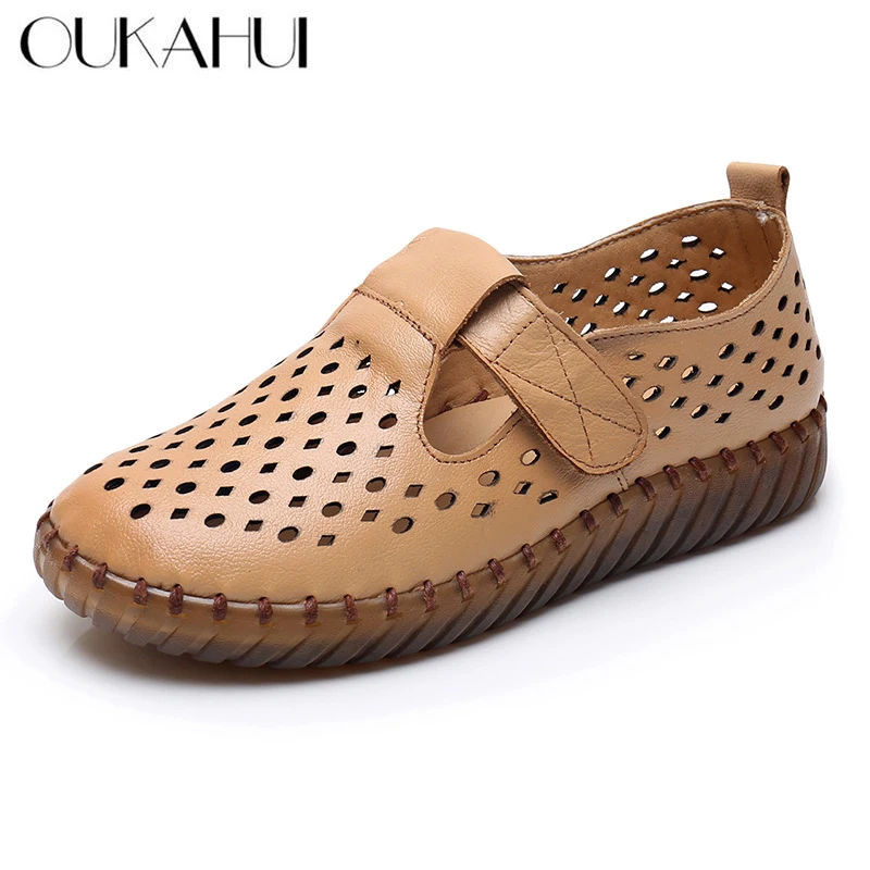 OUKAHUI 2020 женские летние туфли из натуральной кожи женские туфли на плоской подошве и лоферы на липучке мягкие удобные женские туфли на низком каблуке