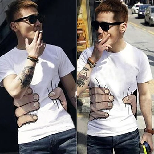 Футболка мужская с объемным рисунком, креативная тенниска с коротким рукавом, модная майка с принтом больших рук и костей, на лето