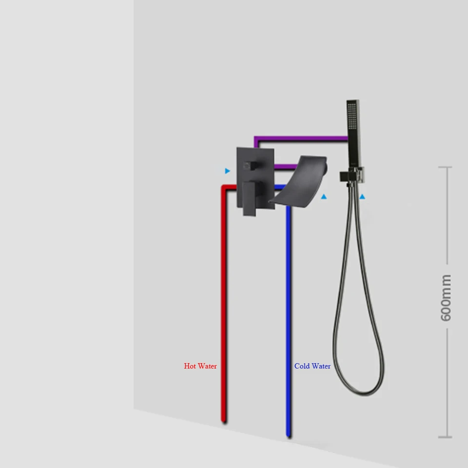 Смеситель для ванны Uythner, хромированный кран на раковину с распылителем, ручной душ, носик Водопад, для холодной и горячей воды