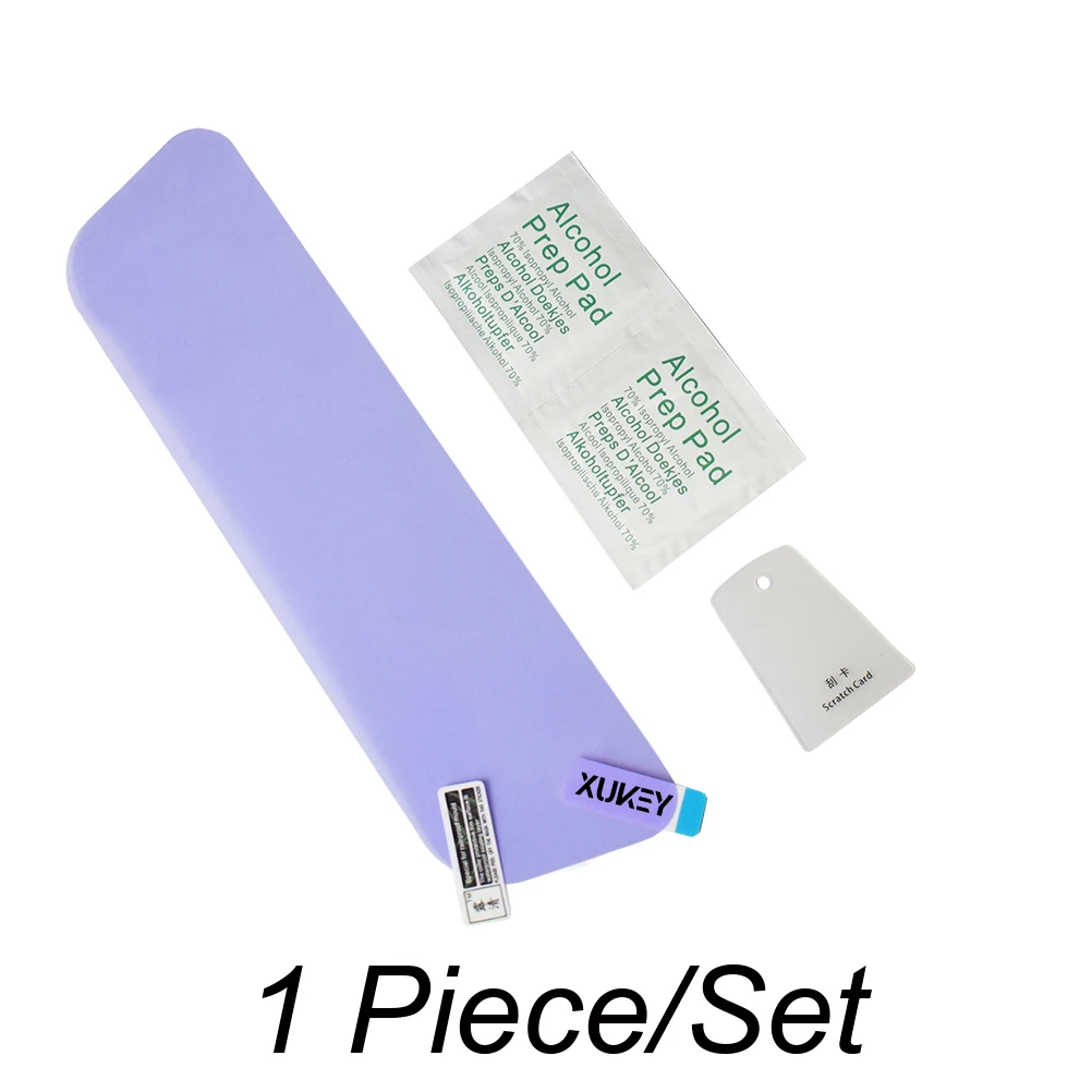 В комплект входит: 1 Прозрачная Антибликовая пленка + 2 влажных/сухих салфетки + 1 скребок