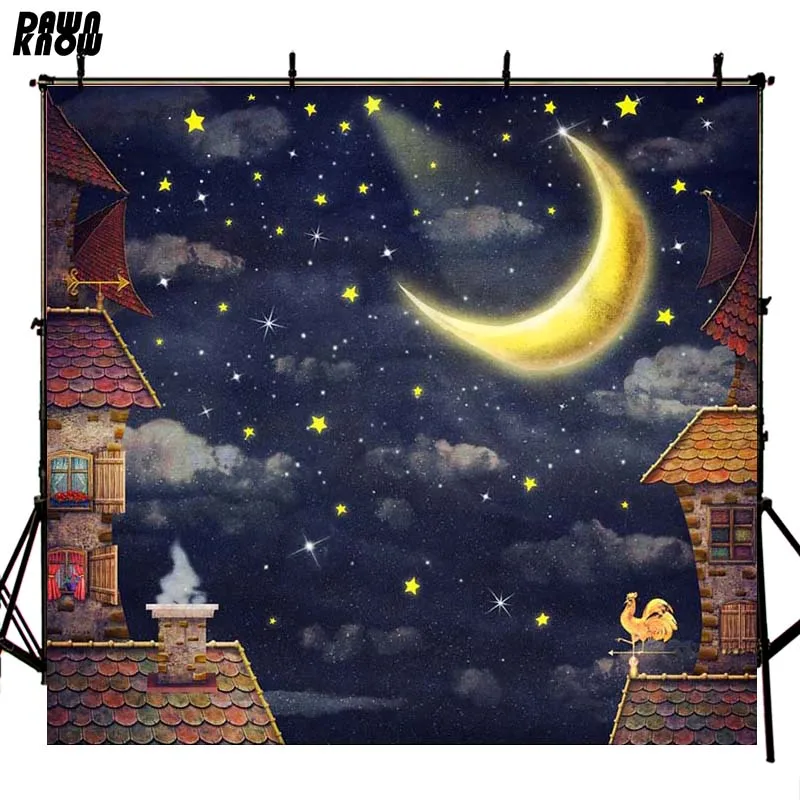 Виниловый фон для детской фотосъемки с изображением мультяшного петуха и звездного неба F2728
